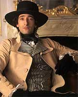 Впрочем, поставлено это все, врать не буду, довольно пристойно. Основные претензии все больше к сюжету и общей направленности всего фильма, а не к постановке. Костюмы и декорации - безусловно, очень хороши (кстати, фильм как раз и выдвигался на Оскара за костюмы). Актеры тоже играют очень и очень неплохо. Не понравилась мне только главная героиня - Хилари Суонк, - а вот все остальные вполне заслуживают того, чтобы посмотреть на их игру. Рито в исполнении Саймона Бейкера - очаровашка, старательно пытающийся быть мерзавцем. Мил, приятен, симпатичен и убедителен. В других фильмах (в частности, в "Секретах Лос-Анджелеса" и в "Красной планете") он мне совершенно не запомнился, а здесь... Весьма хорош Эдриен Броуди в роли мужа Жанны. Эдакий парижский хлыщ, коварный соблазнитель, подлый негодяй. Классно сыграно, типаж - совершенно убедительный, однако при этом не лишенный довольно симпатичных черт. Вот все-таки люблю я, когда подлые соблазнители хорошо выглядят на экране. Уж и не знаю, откуда это во мне.