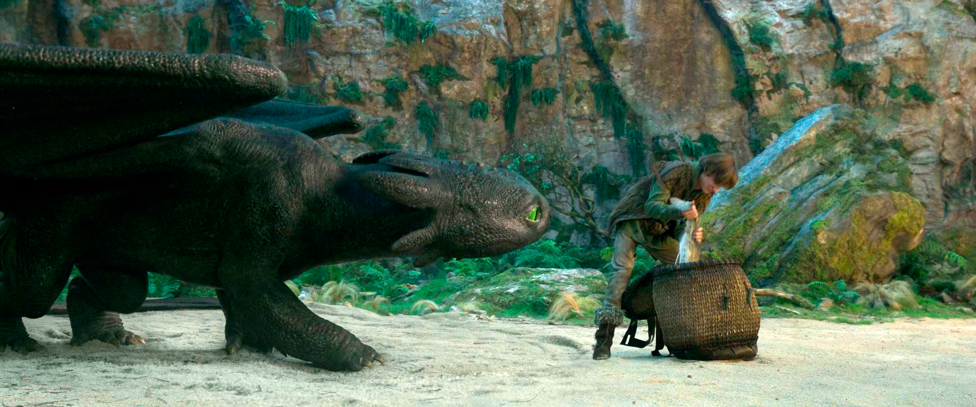 Да, с одной стороны, новый фильм четко следует сюжету первого фильма - кстати, снимал его тот же постановщик Дин ДеБлуа, который был режиссером всех трех соответствующих анимаций, - иногда буквально покадрово, но он идет на полчаса больше и в нем добавили развития персонажей, особенно Иккинга с Астрид (Нико Паркер) и остального молодняка, тренирующихся под руководством Гоббера (в книге он Gobber the Belch - у всех викингов есть грубоватые клички, - а в российском варианте его назвали Плевакой, что, в общем-то, сойдет как вариант перевода).