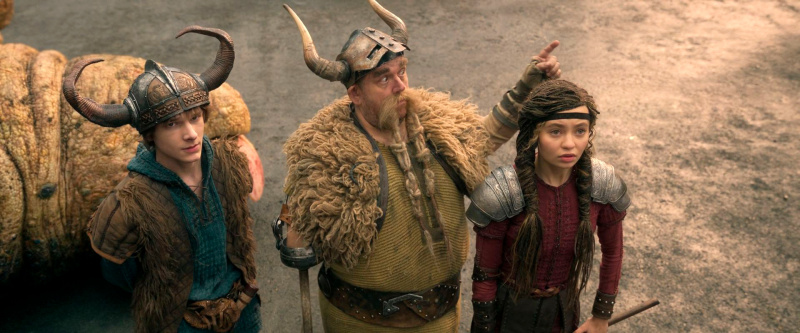 Стоика, что интересно, сыграл Джерард Батлер - он этого персонажа озвучивал пятнадцать лет назад, а теперь его сыграл самолично. И, конечно, в живом варианте Стоик смотрится намного эффектнее - он отличный воин, но при этом вполне склонный к эмпатии, и на него в конце концов производит большое впечатление то, чего добился его сын, которого он считал ни к чему не пригодным.