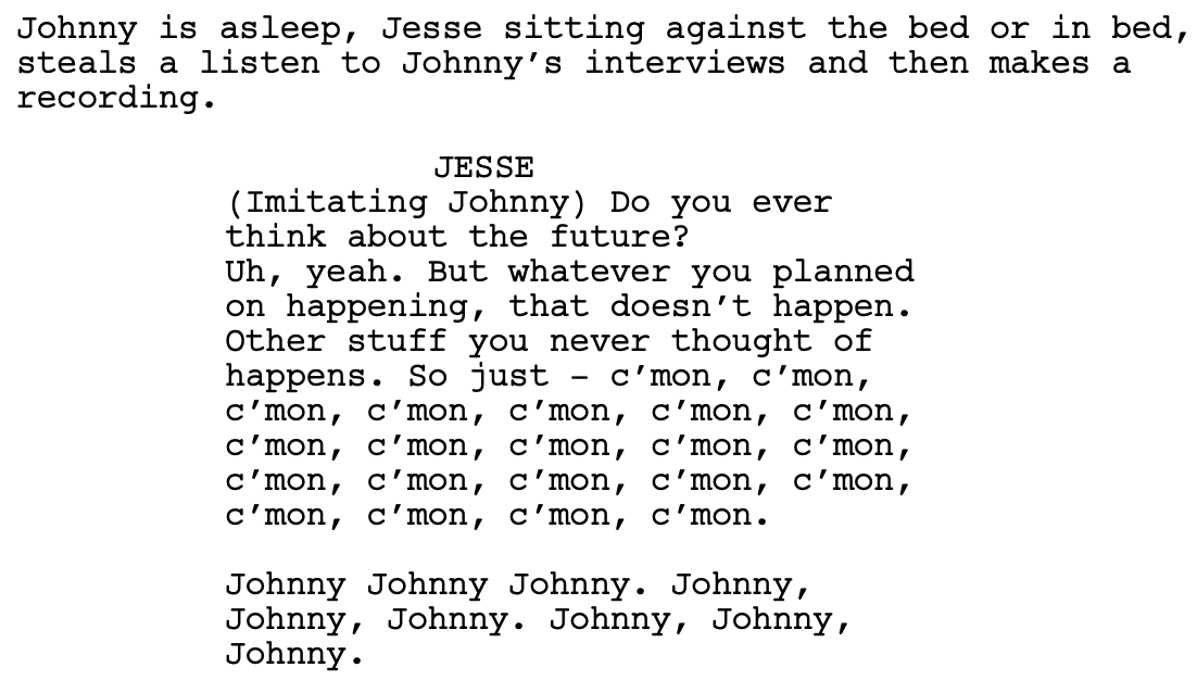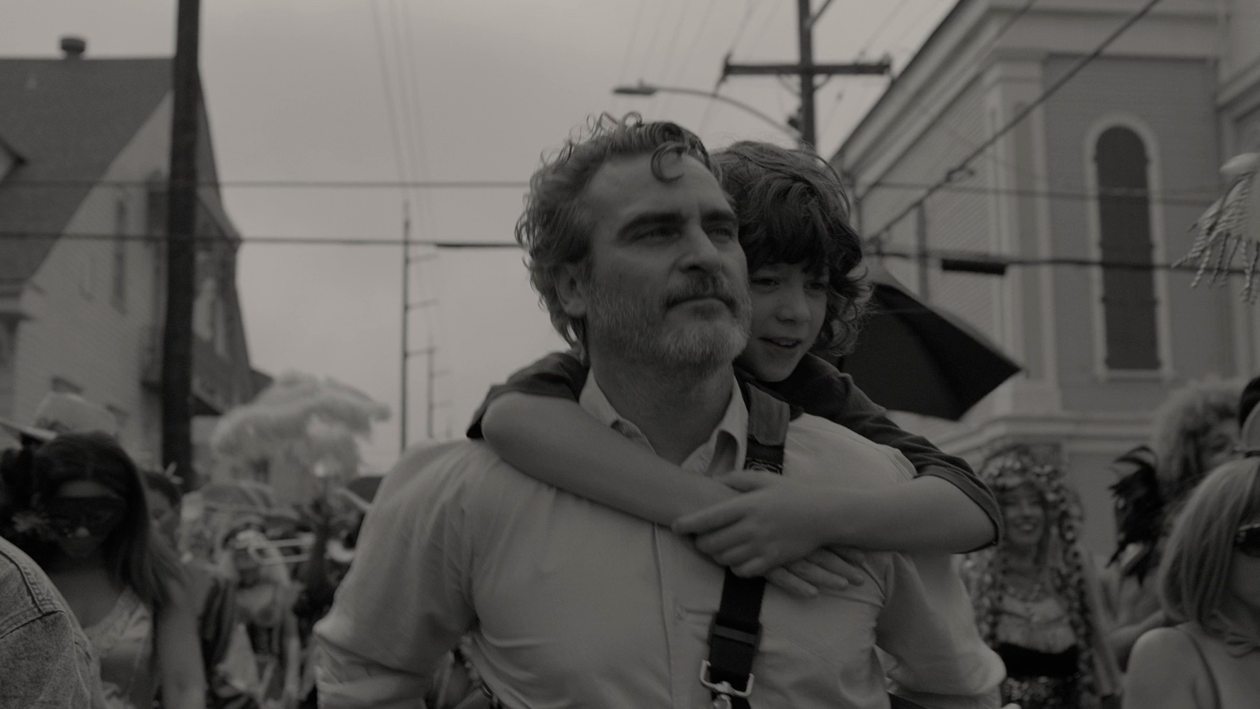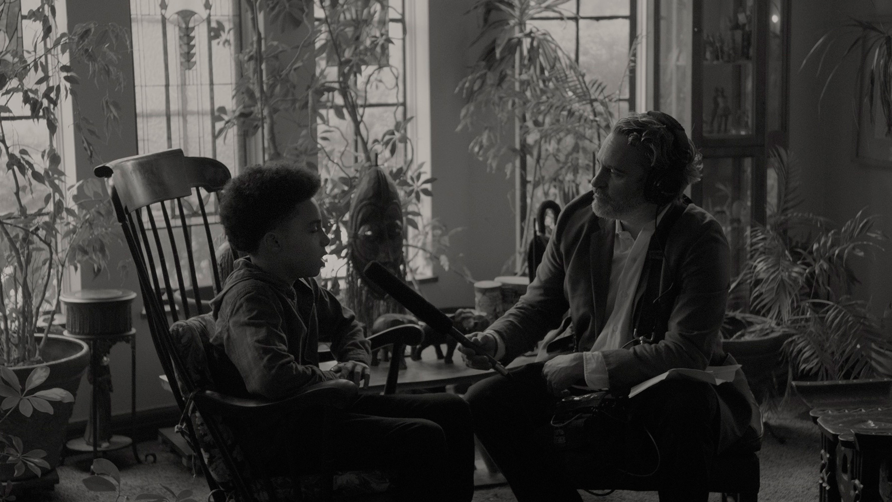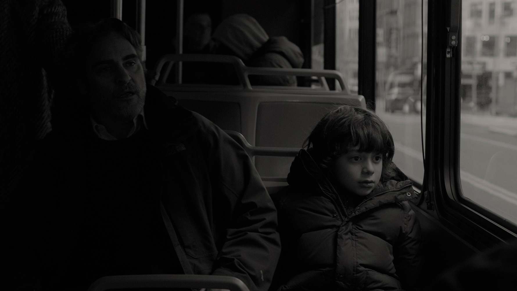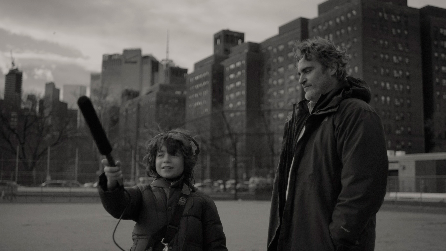 У Хоакина Феникса здесь очень непростой персонаж. Некоторые критики и зрители говорят, что его Джонни получился каким-то "плюшевым", ненастоящим. Но я с этим категорически не согласен! Джонни - это такой взрослый ребенок. Он тоже слегка потерян в этом мире, как те дети, которых он интервьюирует, и как его племянник. Джонни расстался со своей подругой, что он пережил очень тяжело, его явно сильно травмировали болезнь и смерть матери, а также последующий разрыв отношений с сестрой. И это проявляется во всем: в его манере разговаривать, как будто он на что-то обижен, в его юношеских интонациях, которые не очень вяжутся с мужчиной под пятьдесят, и даже в том, как он двигается.