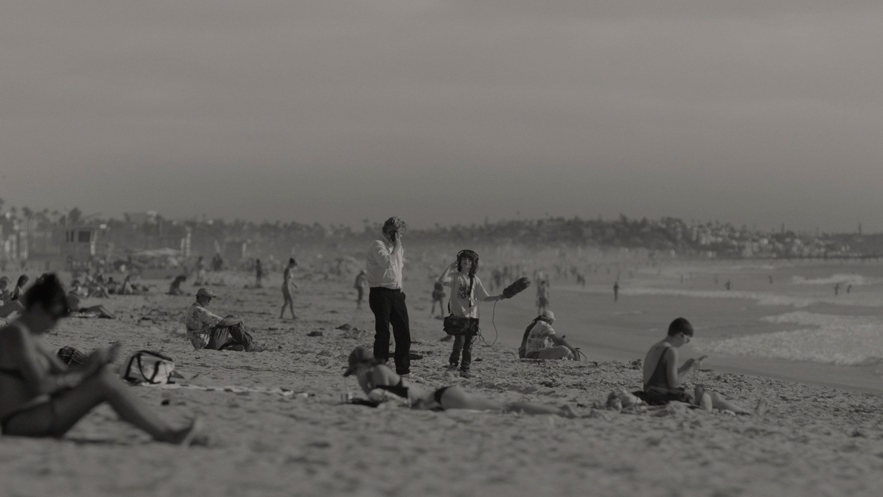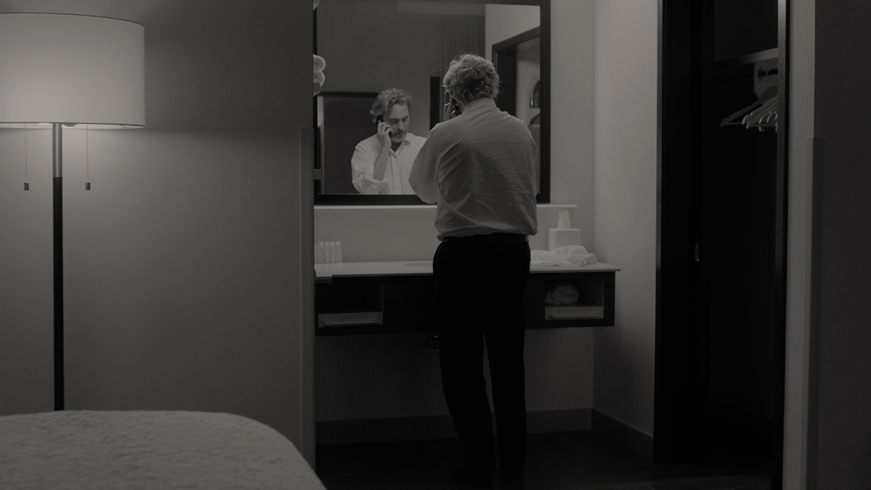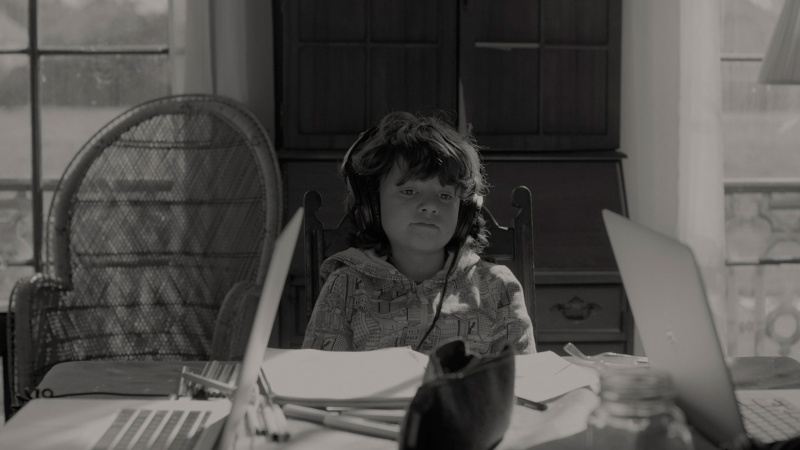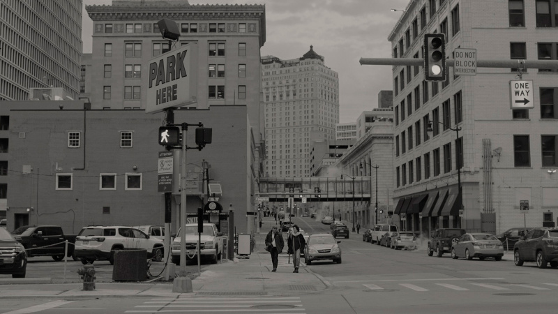 Картина снята в черно-белой гамме, что поначалу несколько удивляет. Потому что тут вроде как нет никаких предпосылок использовать подобный прием. Речь идет о наших днях, персонажи используют современные смартфоны, так зачем вообще черно-белая палитра? Понятно, почему такие картины, как "Манк", "Артист", "Рома", "Холодная война", "Маяк", черно-белые: там это четко обусловлено художественной задачей.