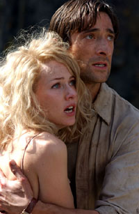 На проклятом острове, куда они попали после цепи различных случайностей, нет календаря, но зато есть те самые туземцы, которые с первого фильма почти не изменились. Энн, как водится, принесли в жертву гигантской горилле, а пацаны, как водится, отправились ее спасать, причем сценарист фильма Джек Дрисколл (Эдриен Броуди) проявляет в экспедиции самое деятельное участие - он любит Энн не меньше, чем Кинг Конг. Так что вторая часть посвящена острову.
