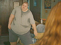 Аронофски, впрочем, попытался сделать эдакий серьезный заход с козырей, когда начал фильм с того, что Чарли пытается мастурбировать (именно пытается, так как отыскать свое хозяйство в складках жира он вряд ли сможет), глядя на гей-порно в ноутбуке, и мы с котом Бубликом подумали, что Аронофски по крайней мере здесь выйдет за какие-то собственные границы, но потом оказалось, что он пошел по очень проторенной и предсказуемой дорожке с цитатами из "Моби Дика" (ах, сравнение Чарли с китом - какая глубокая метафора, прости господи), с цитатами из Библии и предельно раздражающими своей дешевизной театрализованными эпизодами в самом конце.