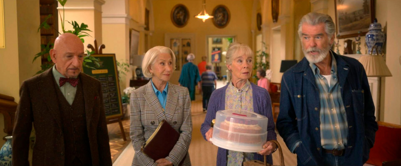 Пирс Броснан, Хелен Миррен и Джефф Белл вместе играли в сериале "Гангстерленд", и мне там персонажи Броснана и Миррен (они играли мужа и жену) не понравились совершенно. А здесь они - очень хороши! Элизабет, которую играет Хелен, в этом клубе играет главную скрипку, она очень деятельна и прямолинейна, и у нее там периодически забавно всплывает ее спецагентское прошлое. Роль чудесная, очень понравалсь.