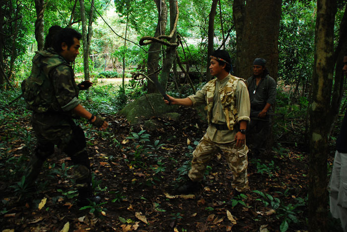 Группу забросили на остров, и они в сопровождении Чжан Хен Ву, приставленного с тайской стороны, пробираются к экспедиции.