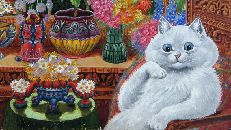 В какой-то момент супруги нашли в саду маленького котенка черно-белой расцветки. Они взяли его в свой дом, назвали Питером, и Луис, которому всегда хорошо удавалось изображать животных, начал рисовать Питера, а потом и других котов. Причем если изначально это были просто изображения котов, кошек и котят, то позже Луис стал рисовать их антропоморфными, то есть придавал животным человеческие черты. На его картинах коты прогуливались на задних лапах, играли в покер, пили чай, а также всячески пародировали человеческое поведение.