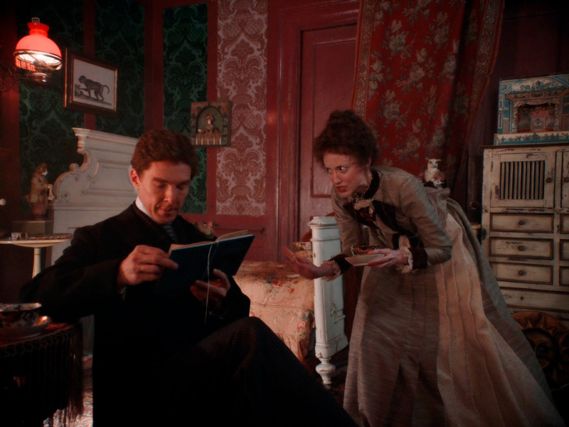 Актеры в картине заняты отличные. Бенедикту Камбербэтчу не впервой играть такую асоциальную и своеобразную личность со своими психологическими проблемами, и он Луиса Уэйна играет просто отлично. Роль сложная и многогранная: он не просто эдакий странноватый человек, который находился под постоянным прессом сестер, пошедший против общепринятой морали, женившись на женщине старше него на десять лет, да еще и из совершенно другого, намного более низкого социального слоя, он еще и постепенно теряет рассудок, и Камбербэтч, на мой взгляд, это все изобразил великолепно!