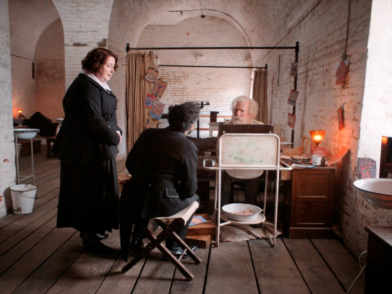 Тем не менее мне картина понравилась, хотя я тоже могу отметить некоторые ее слабые стороны. Вся первая часть - юность художника, его знакомство с Эмили, их женитьба и жизнь до кончины Эмили - отличная. Она очень здорово поставлена и сыграна. Последующие две трети фильма - там возникает такое ощущение, что постановщик толком не может решить, что и в каком стиле он будет снимать дальше: эпизоды триумфа Луиса сменяются скандалами в семье, потом толком не объясненный отъезд в Америку, причем американская часть сделана предельно невнятно, затем возвращение и далее несколько схематично показанная история того, как Уэйн постепенно сходил с ума.