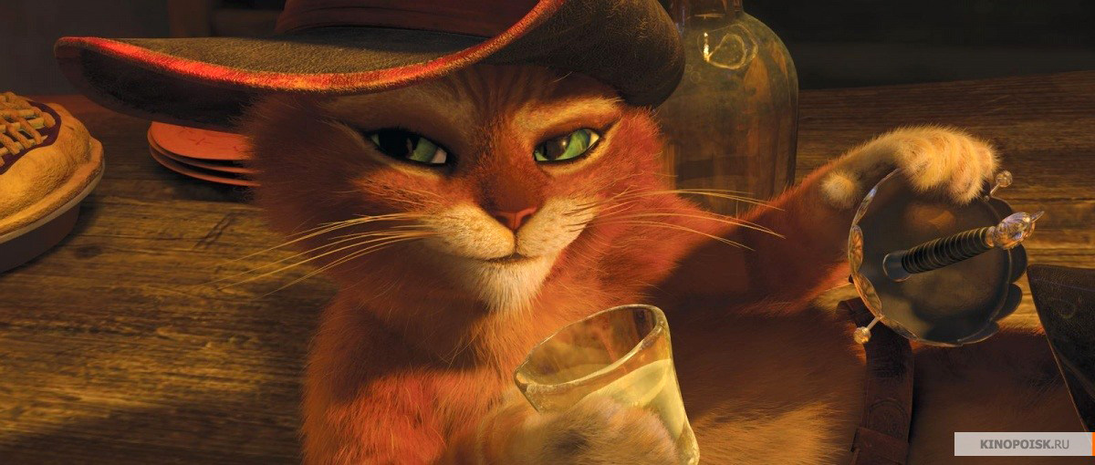 Появившийся во втором "Шрэке" пушистый убийца Кот в сапогах мгновенно завоевал симпатии зрительской аудитории. Правда, Кот не блистал какими-то особо остроумными диалогами, да и в действии толком участия не принимал, но одни знаменитые бездонные глаза, обычно проявляющиеся перед смертельным выпадом, - уже за них можно было отдать все на свете! Ну и, кроме того, как можно не любить это пушистое создание в таких забавных сапожках, в такой смешной шляпке, с такой забавной шпажонкой?