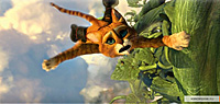Нарисован мультик вполне прилично - вот тут как раз все нормально.  Колоритные персонажи, безбрежные пейзажи, реально впечатляющие сцены охоты на Джека и Джил, классный подъем по бобовому стеблю, замечательная облачная страна, кошаки в подвале - все это смотрится здорово. Беда только в том, что эффектные кадры можно вместить буквально в десятиминутный трейлер, а на фильме вам сидеть - полтора часа.
