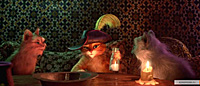 О сюжете. Нормальных идей для полноценного фильма у создателей "Кота в сапогах" не было. То есть было понятно, что сапожки, шляпа, бездонные глаза и испанский акцент - это все надо куда-то впихнуть, но куда... Тем более что в предыдущих "Шрэках" спародировали, казалось бы, практически всех более или менее примечательных сказочных персонажей, включая даже Румпельстилтскина!