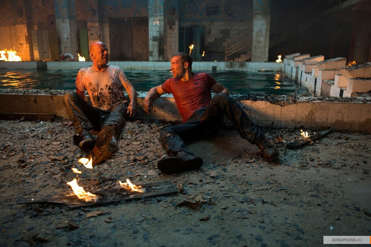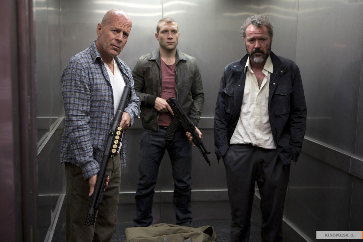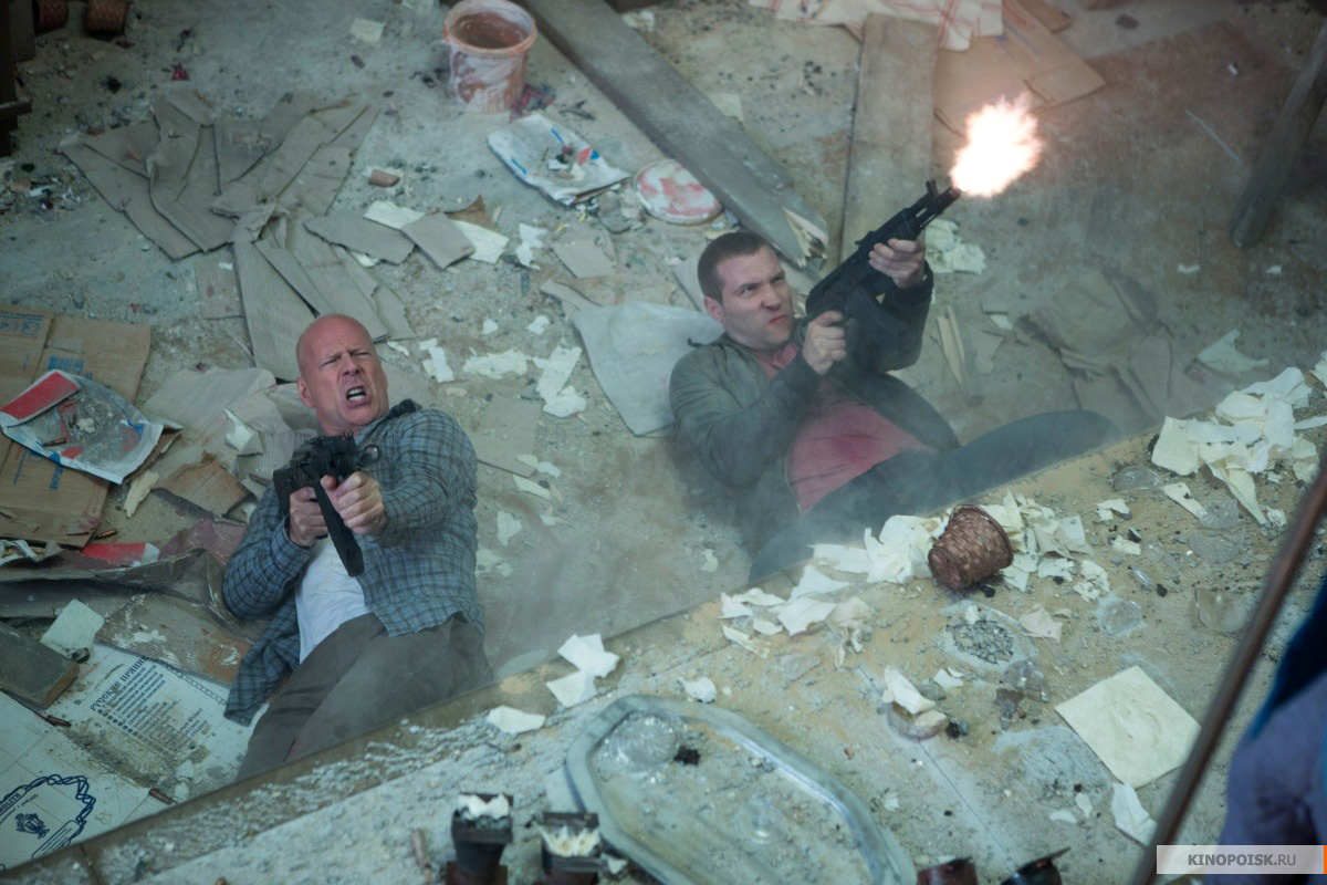 - Брюс с сыном оказываются захвачены отморозками, а дочка олигарха (которая в совершенстве владеет оружием и непринужденно управляет БОЕВЫМ вертолетом) забирает папика и решает улететь. Тем временем Брюс с сыном освобождаются…