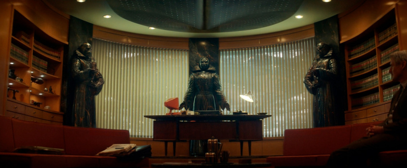 Сериал "Локи" - разнообразный и разножанровый. "Управление временными изменениями" в первой серии - нечто очень забавное и явно сатирическое: забюрократизированная вусмерть организация с практически безэмоциональными работниками, равнодушно выполняющими свои служебные обязанности, карикатурные суды над "вариантами" и смертные приговоры, которые мгновенно приводятся в исполнение. Одновременно напоминает вогонов, космических бюрократов из "Автостопом по Галактике", и причудливые офисы "Бразилии" Терри Гиллиама.