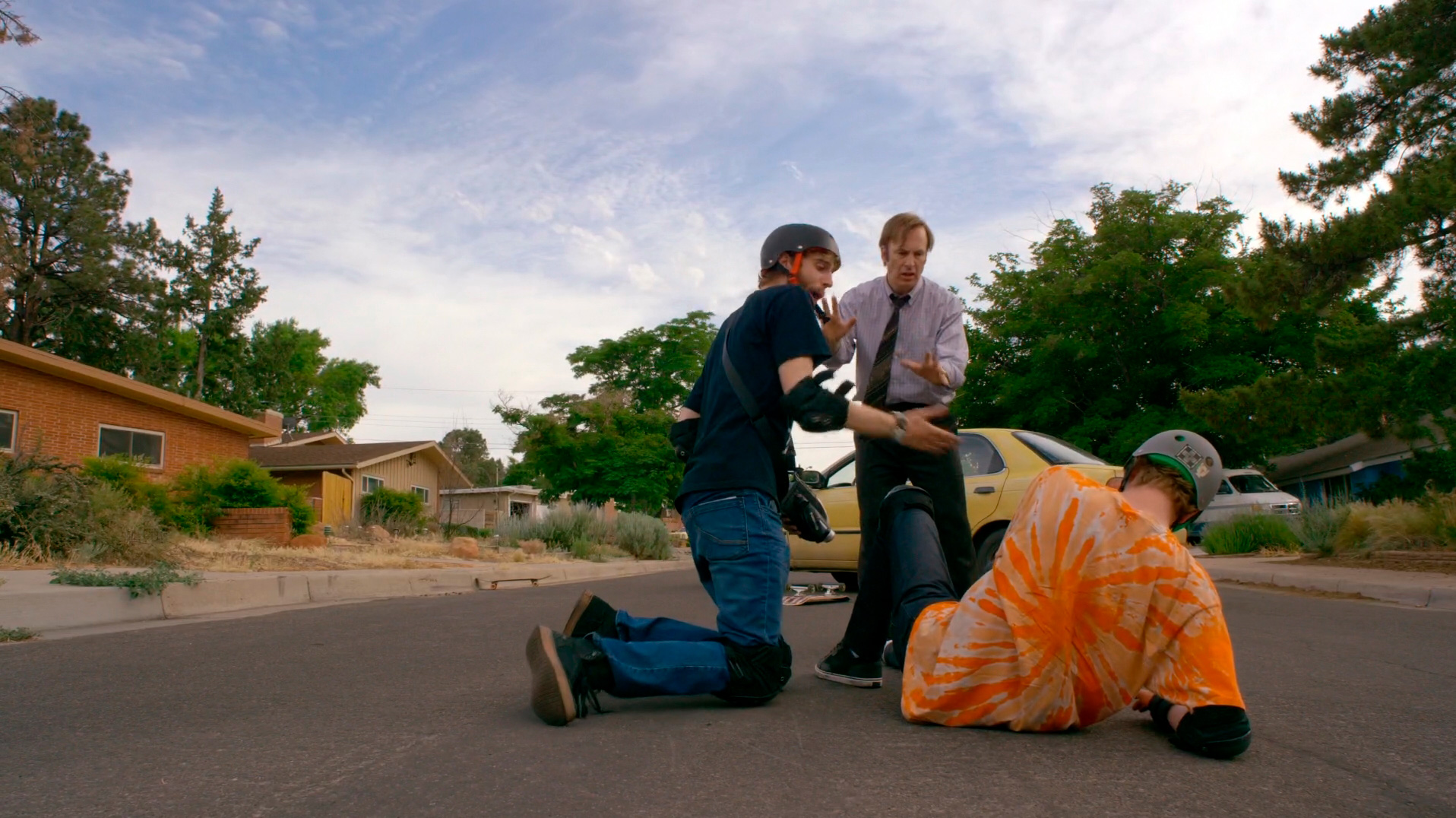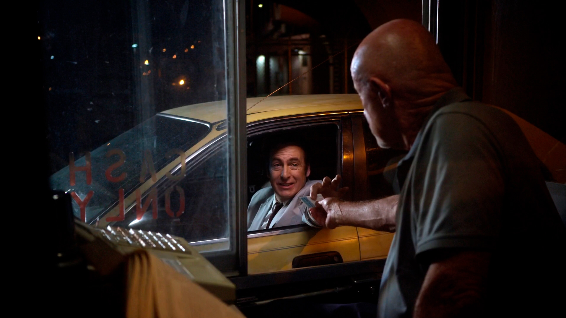 В описываемое время (за шесть лет до событий "Во все тяжкие") Майк Эрмантраут (Джонатан Бэнкс) работает дежурным на парковке, куда Джимми ставит машину, когда приезжает на судебные заседания, и между Джимми и Майком периодически возникают забавные перепалки, когда Майк требует от адвоката талончик с оплатой.