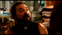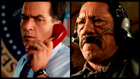 Далее Мачете за это (точнее, за шею) уже почти повесил местный служитель закона Пискунов (Уильям Сэдлер), который не любит мексиканцев, но тут раздался звонок нашего дорогого Президента (Карлос Эстевес), который пригласил Мачете на рюмочку текилы в Западное крыло, а то от этого южного гостеприимства, говорит Президент, глядя на Пискунова, сдохнуть можно.