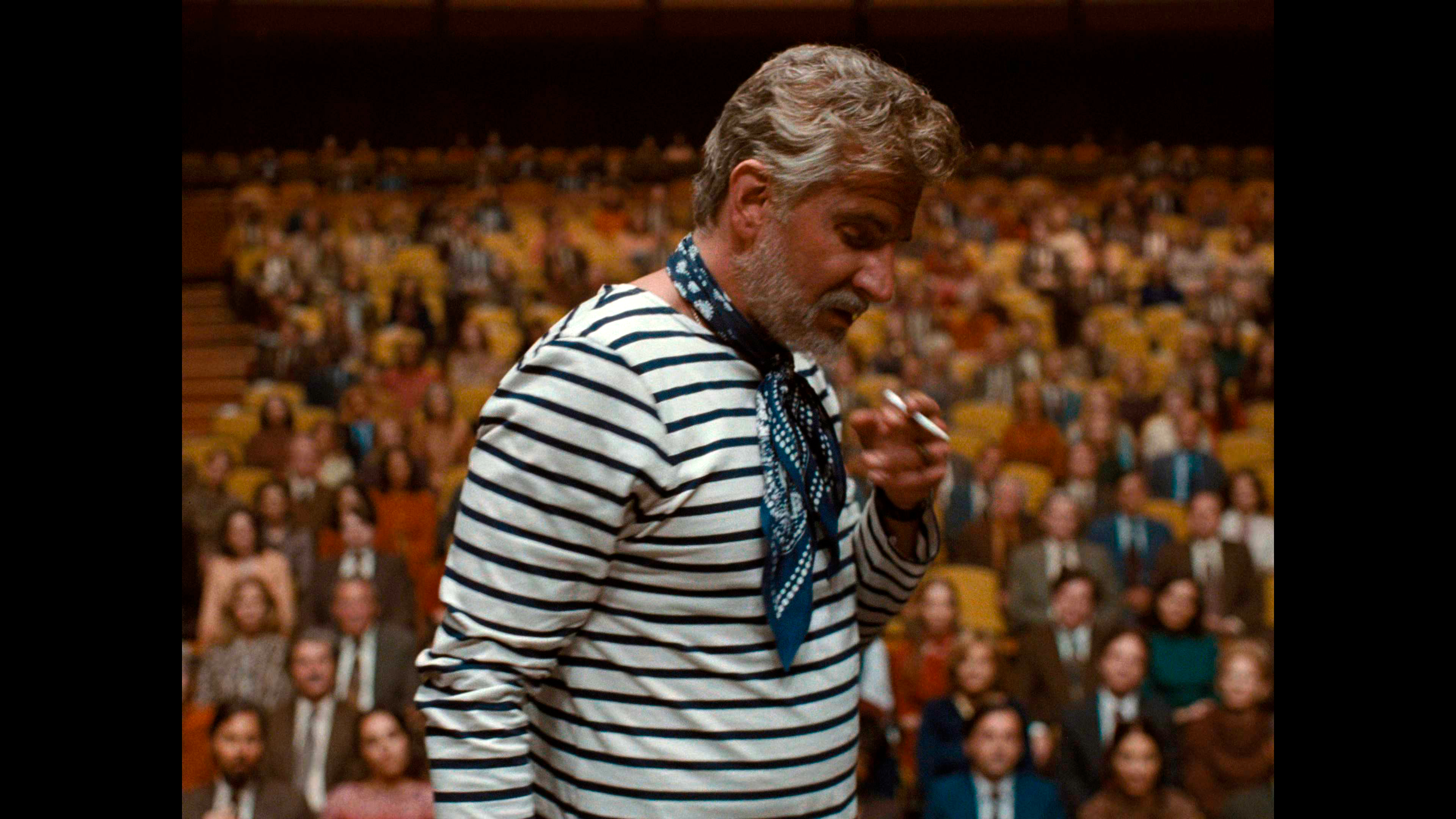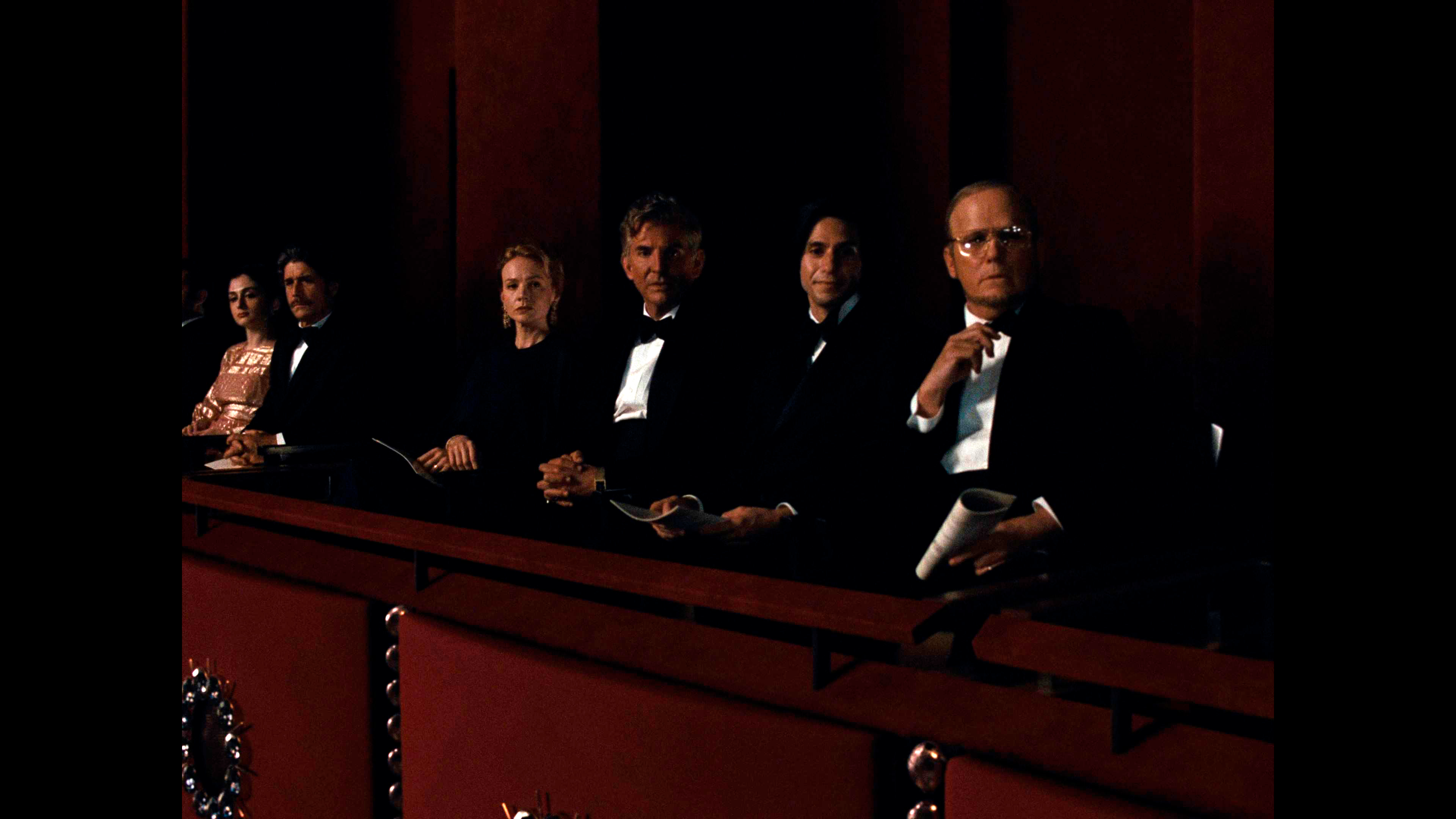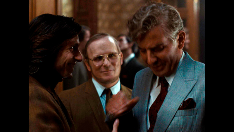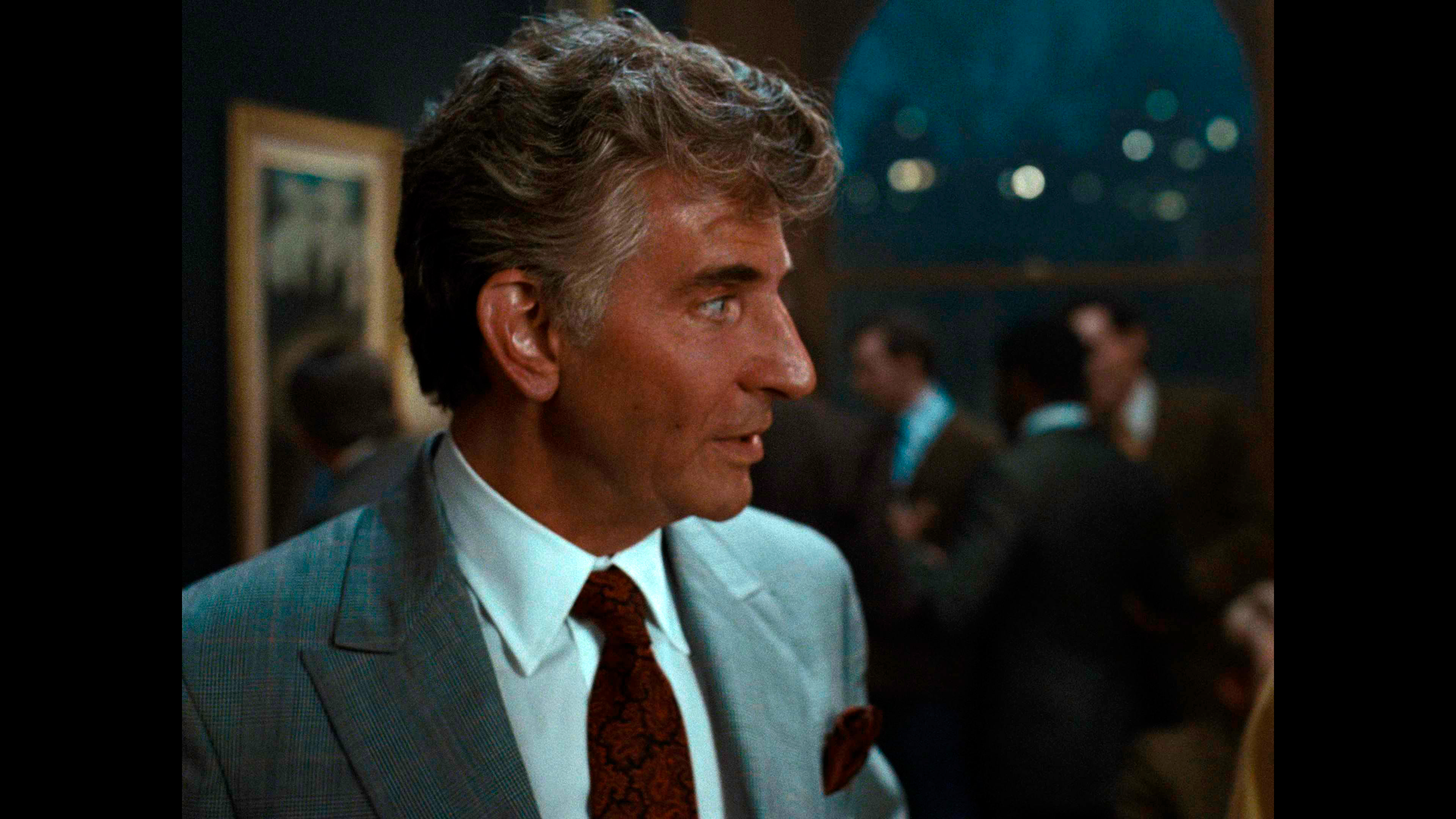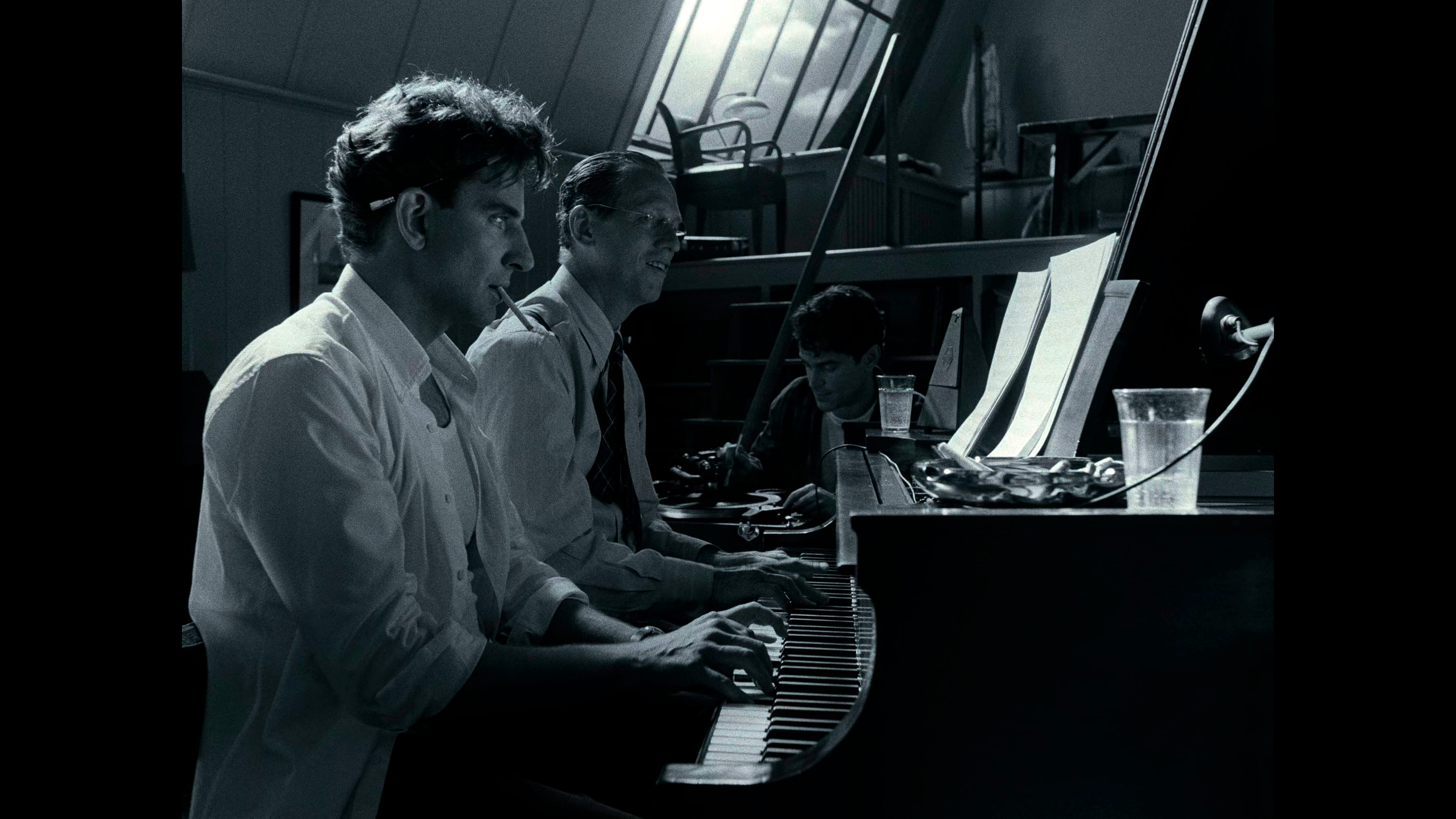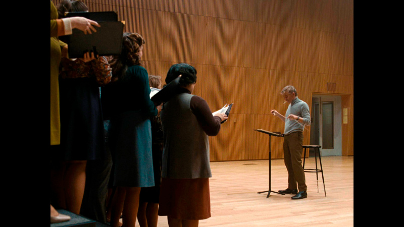 Все остальные аспекты жизни Бернстайна показаны, что называется, крупным помолом, а многие из них просто полностью опускаются. Какое-то время уделяется взаимоотношениям дирижера с мужчинами (в те времена это совершенно точно не могло выглядеть настолько открыто, причем известно, что в реальности Леонард проходил сеансы так называемой "заместительной терапии" - тогда считалось, что гомосексуальность - это болезнь, которую можно лечить), немного показываются его репетиции, ну и в фильме есть практически одна-единственная (кроме сцены в самом начале) действительно шедевральная сцена дирижирования, о которой я расскажу чуть позже.