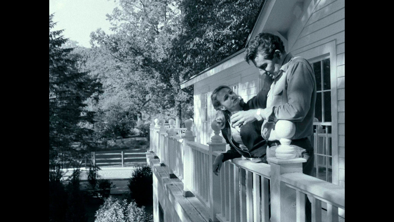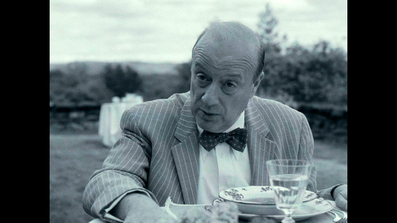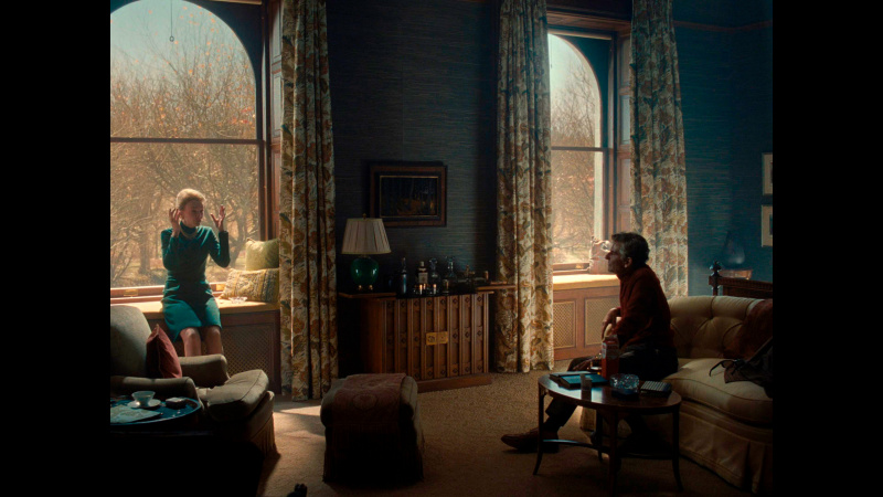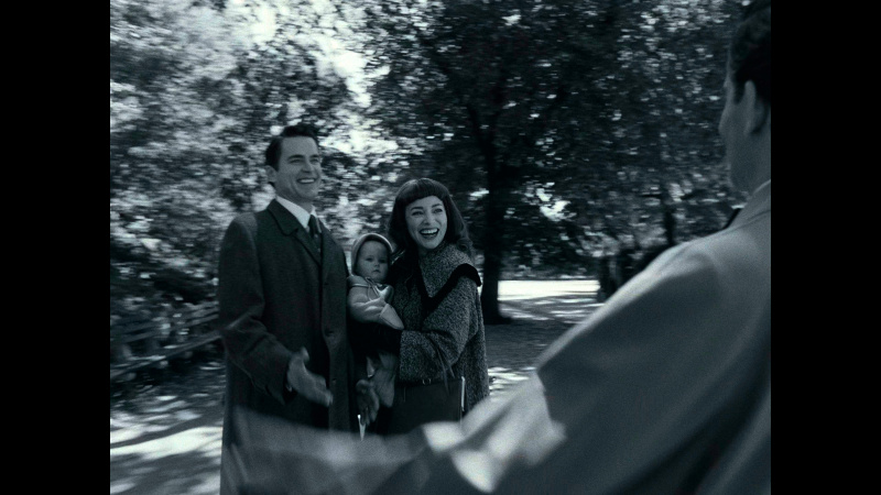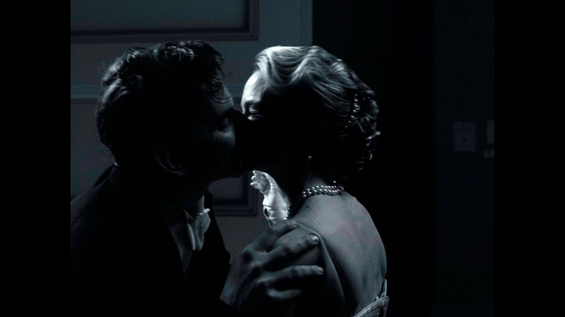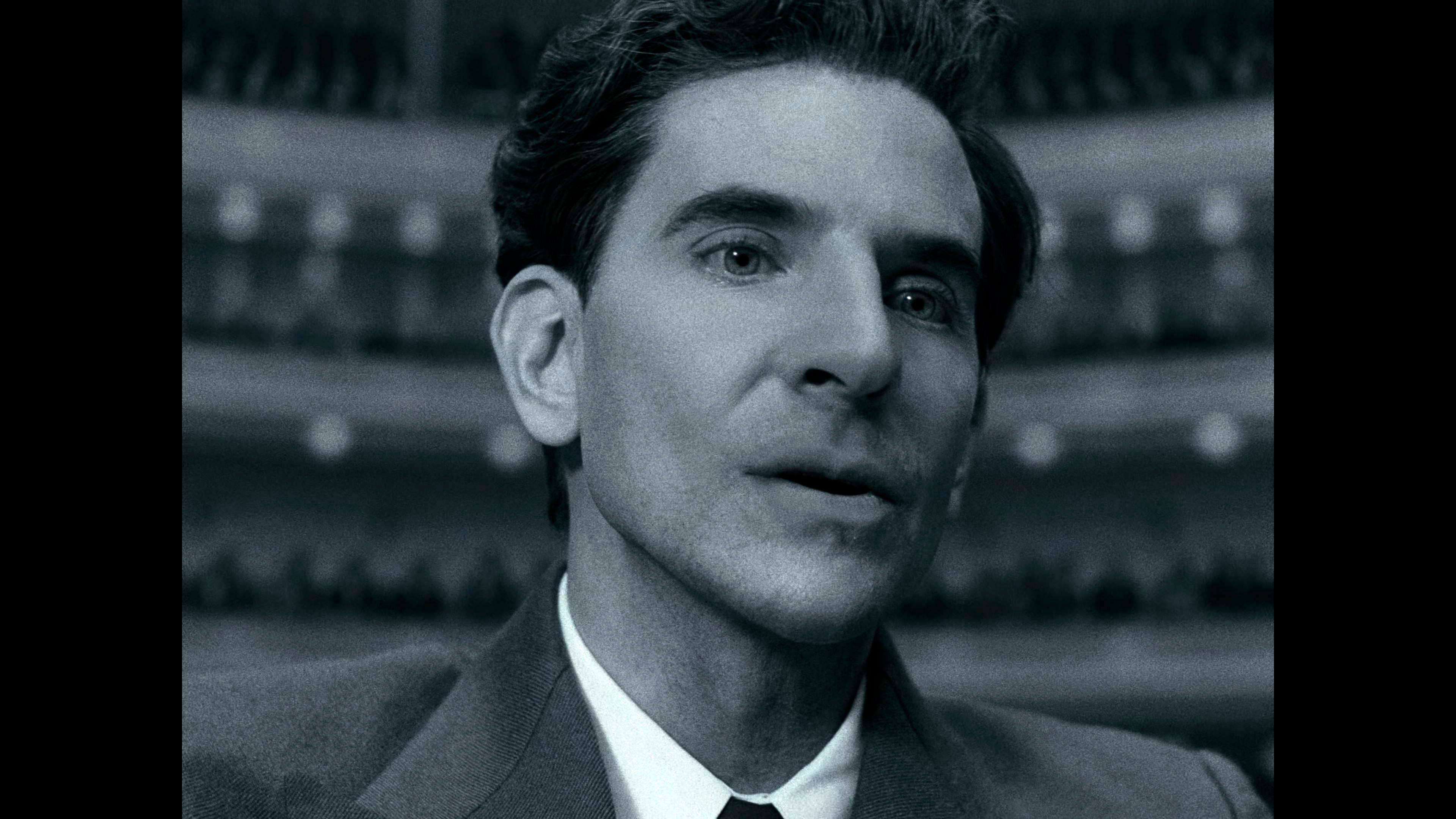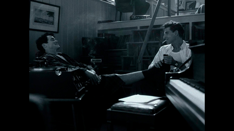 Бернстайн в фильме существует как бы вне контекста и даже вне времени. Сороковые-пятидесятые показываются в черно-белой гамме - прием настолько типовой, что уже несколько утомляющий, - затем появляется цвет, символизирующий новые времена, формат изображения - все тот же чертов почти квадрат 4:3 (как же они этим достали в XXI-то веке!), и только в самой финальной сцене появляется стандартный формат изображения 16:9.