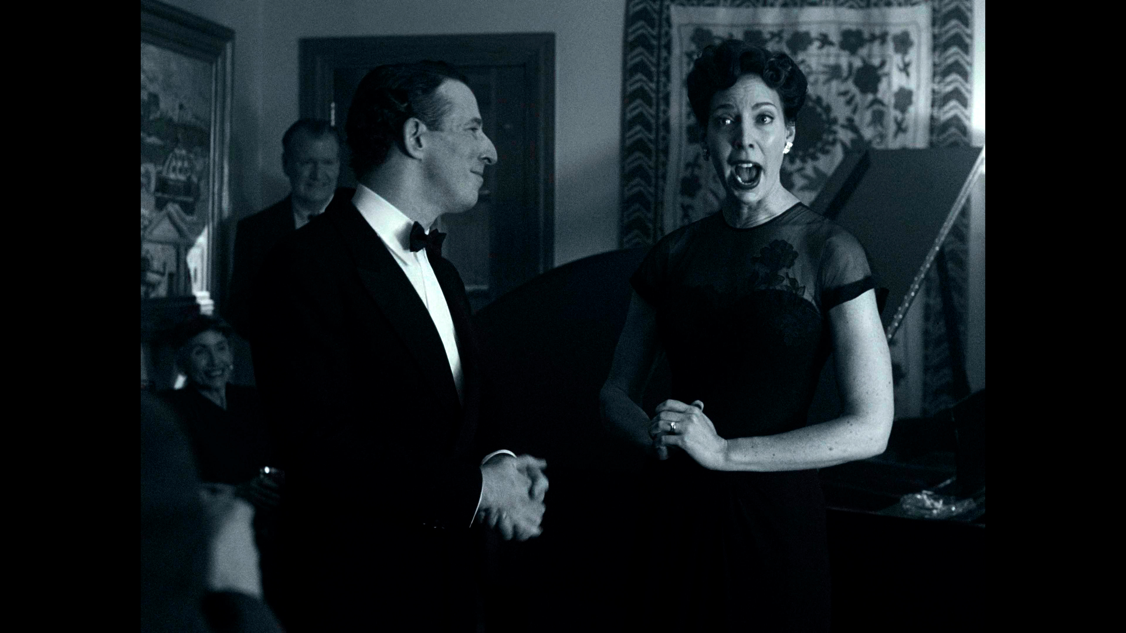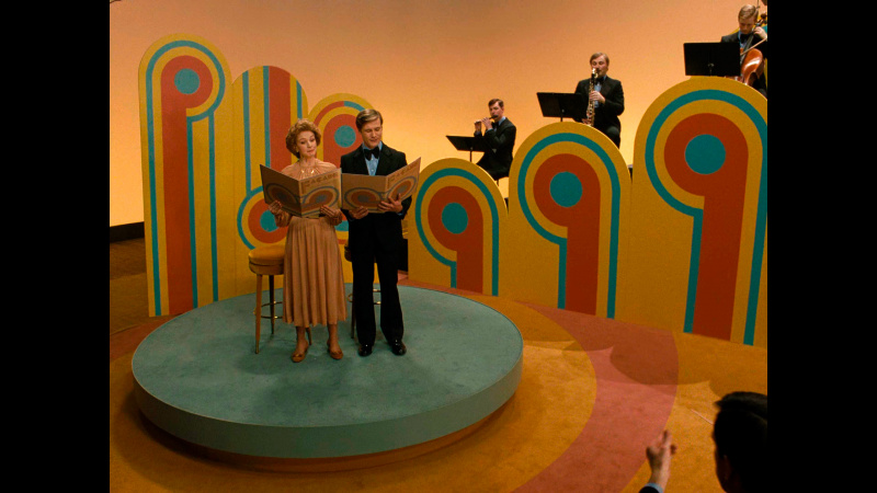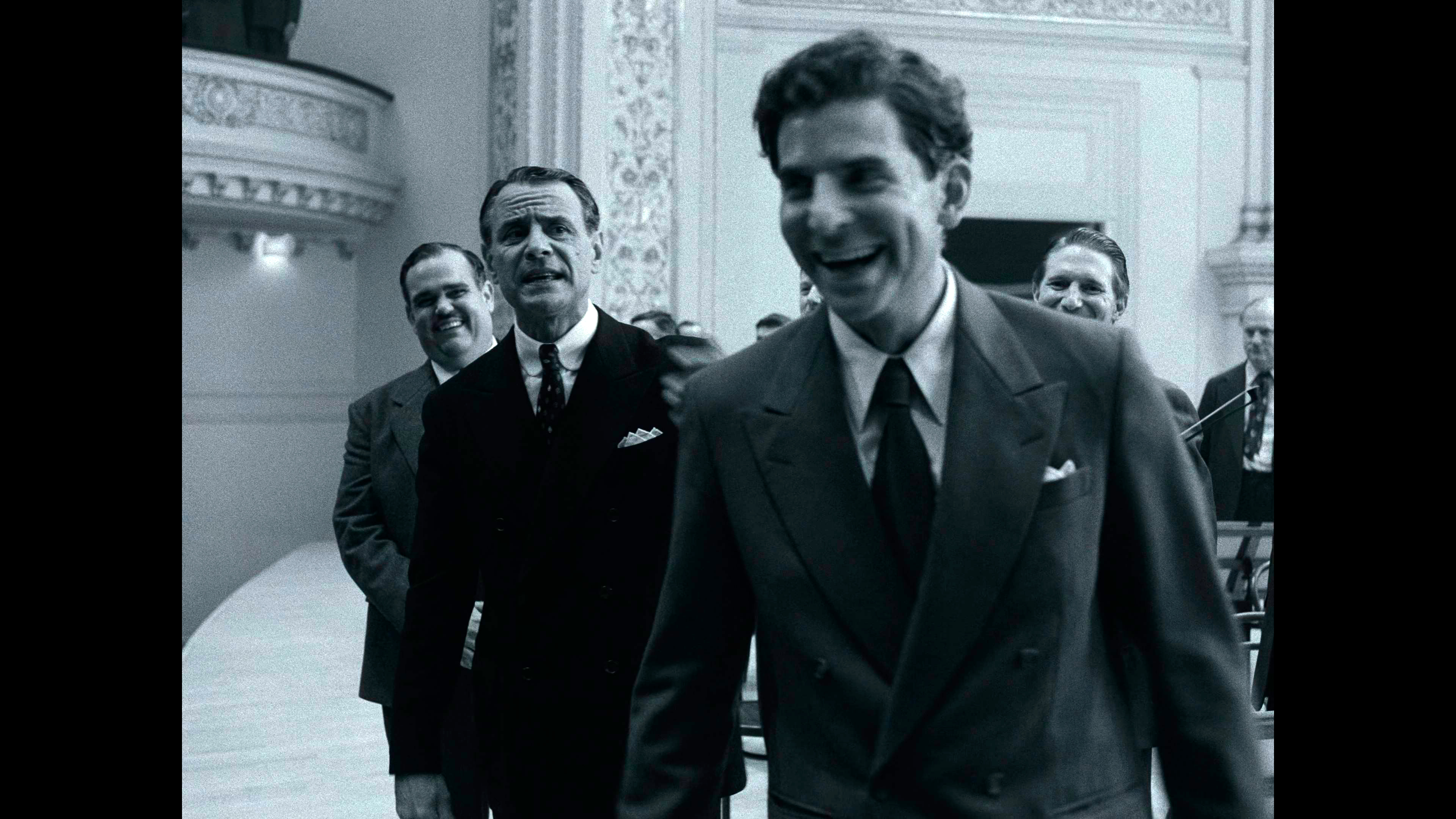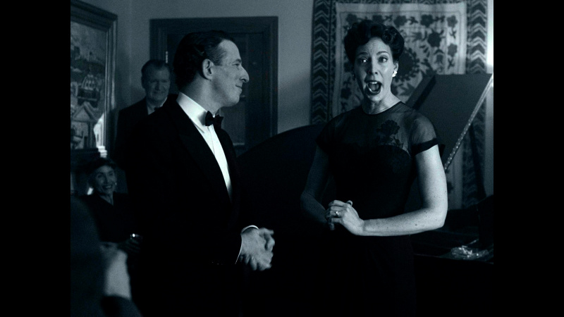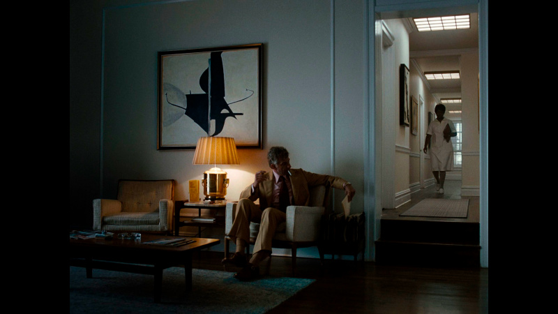 Бернстайн в фильме существует как бы вне контекста и даже вне времени. Сороковые-пятидесятые показываются в черно-белой гамме - прием настолько типовой, что уже несколько утомляющий, - затем появляется цвет, символизирующий новые времена, формат изображения - все тот же чертов почти квадрат 4:3 (как же они этим достали в XXI-то веке!), и только в самой финальной сцене появляется стандартный формат изображения 16:9.
