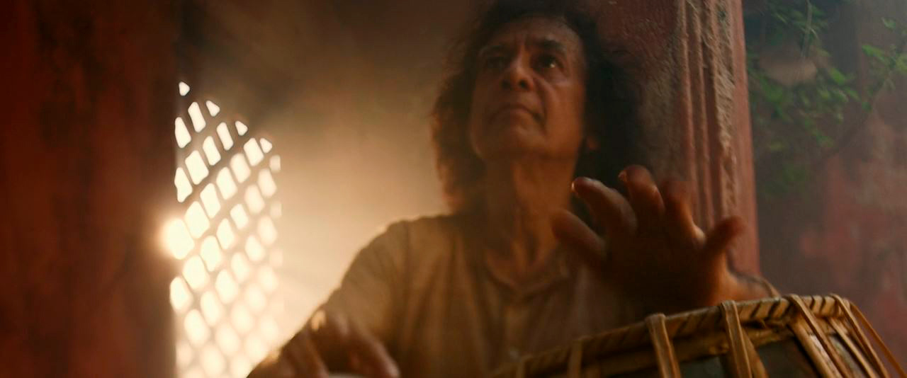 И наши с Бубликом комплименты мастеру игры на барабанах табла Закиру Хуссайну: с этими барабанами Манкимэн сталкивается в монастыре, и мастер табла с помощью своего инструмента помогает парню тренироваться - это хорошо сделано, очень понравилось.