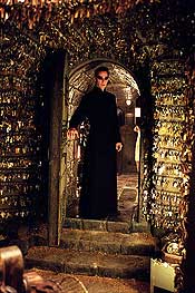 Что интересно, в фильме есть и одна шутка. Довольно удачная. Это когда Нео ищет так называемого Мастера ключей (престарелого хакера): он открывает некую дверь, а за ней видит комнатку, в которой на крючочках висит, вероятно, миллион железных ключиков. "Привет, - говорит старичок, сидящий в центре комнаты за верстачком. - Я мастер ключей". Это хорошая хохма, честное слово. Что бы Нео делал, если бы старичок ему не представился, а?..