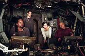 Но в любом случае, и первые, и вторые единодушны: драки и погони - просто фантастические. Жаль только, что мало. Но и они обошлись очень и очень недешево, поэтому будем милосердны: вся эта полуторачасовая тягомотина стоит автомобильной сцены. Ради нее Вачовским можно простить даже неубиваемую Тринити (у нее есть отвратительная манера по полчаса совершенно невредимой ездить туда-сюда под градом пулеметного и автоматного огня, но мгновенно получать пулю в банальной перестрелке из пистолетов), которую Нео традиционным поцелуем излечивает и от пули в лоб, и от атипичного сердечного приступа.