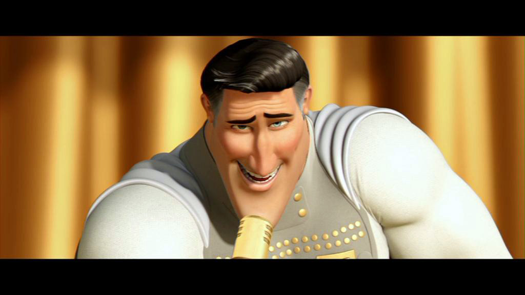 В отличие от "Шрэка", который был явным и очень неожиданным срывом стереотипа, "Мегамозг" как фильм - наоборот, явный и даже нарочитый стереотип. В каждом кадре картины видны какие-то киноцитаты и пародии на что-то, причем, что самое интересное, очень часто проявляются пародии на пародии, что приводит к определенному зацикливанию.