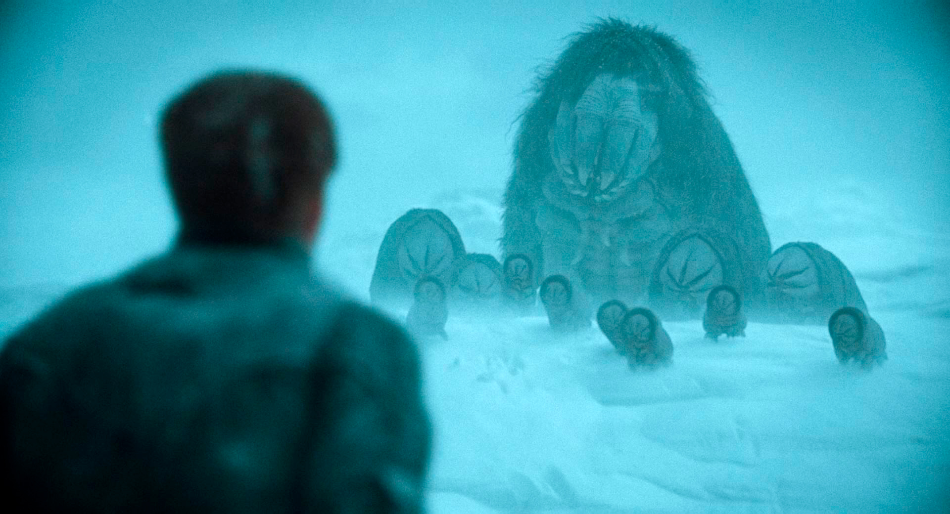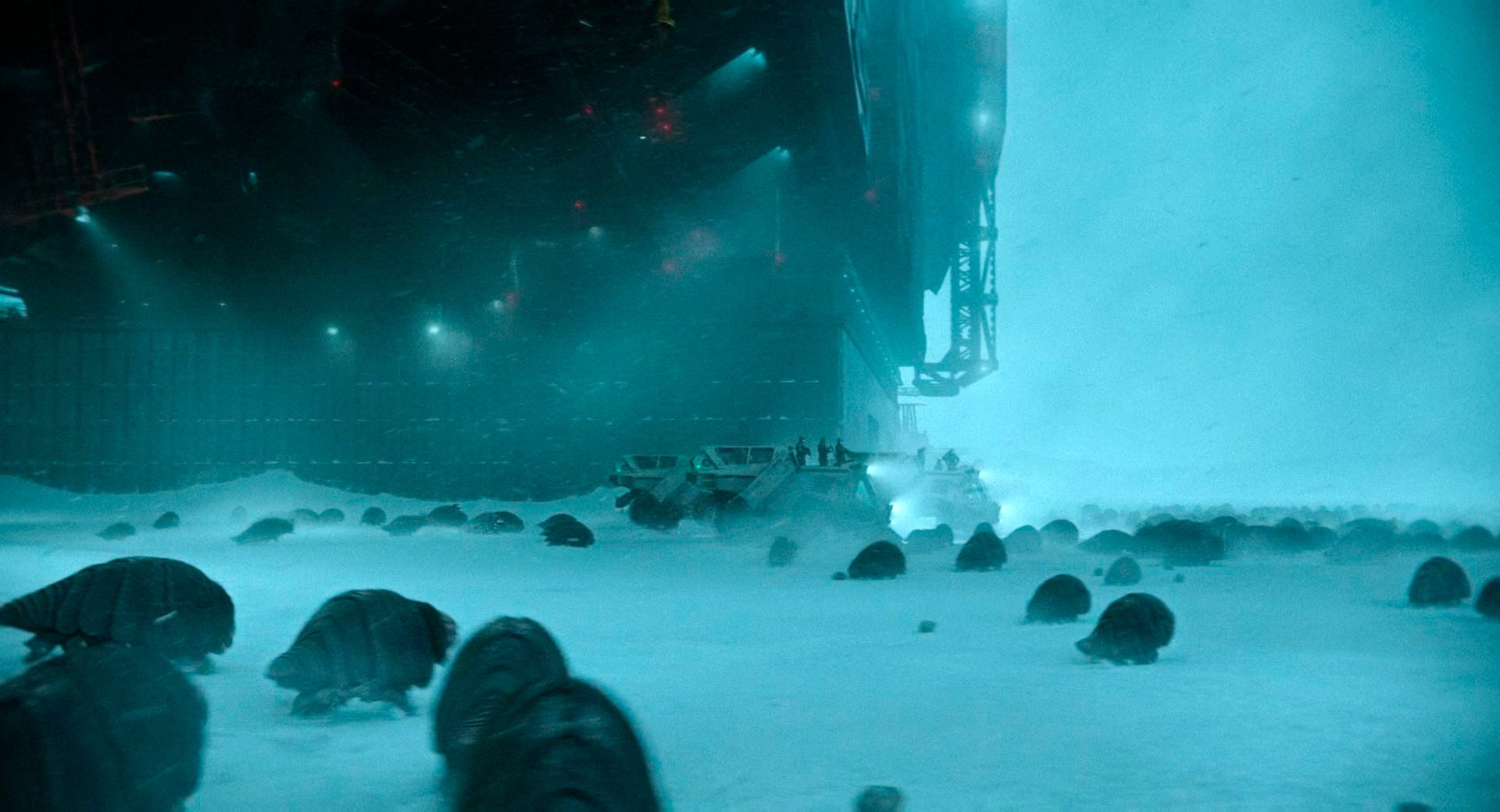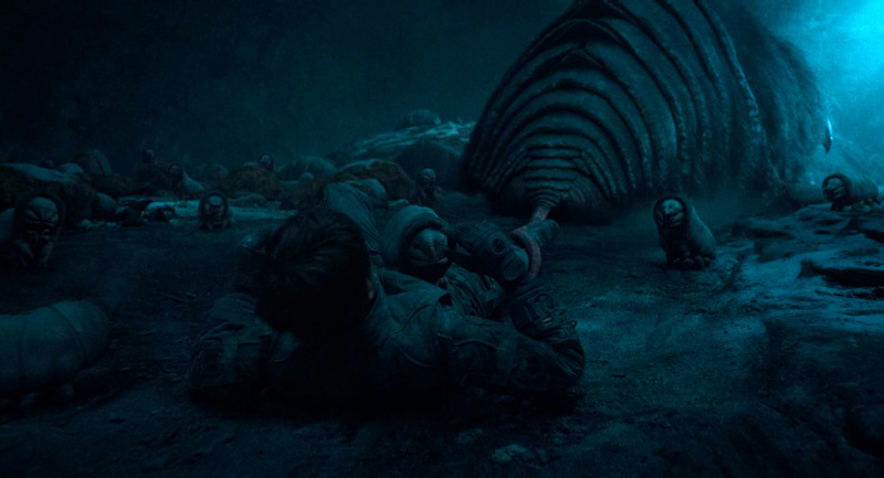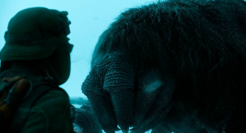 Снято это хорошо - замкнутое пространство космического корабля, неприветливая заснеженная планета, первоначально наводящие жути жутики (в оригинале - creepers), которые оказываются не такими уж и жуткими (это сразу становится понятно, когда они спасают Микки 17 вместо того, чтобы его сожрать) - смотрится картина вполне достойно. Единственное - мы с котом Бубликом хоть убей не смогли тут обнаружить потраченные на фильм $118 миллионов, а ведь это очень большой бюджет, на "Сквозь снег" потратили $39 млн.