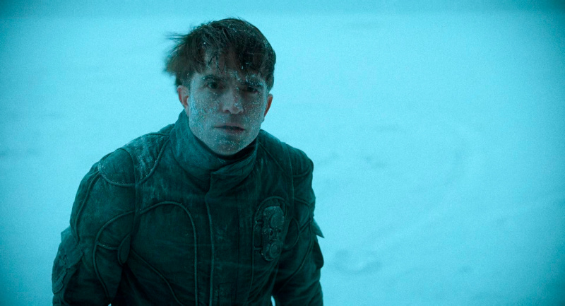 Главное достоинство картины - Роберт Паттинсон. Который, как я уже упоминал, сыграл две совершенно различные роли. Первоначальный Микки, он же Микки 17, персонаж не слишком интересный. Он такой несколько амебный, слабохарактерный. Расходник? Ну так расходник. Умирать? Ну так умирать. Семнадцать раз умирать? Почему бы и нет. Единственное - его совершенно задолбало отвечать остальным колонистам на вопрос "Каково это - умирать?". Потому что, знаете ли, умирать - чертовски неприятно, особенно учитывая род занятий Микки на этом корабле.