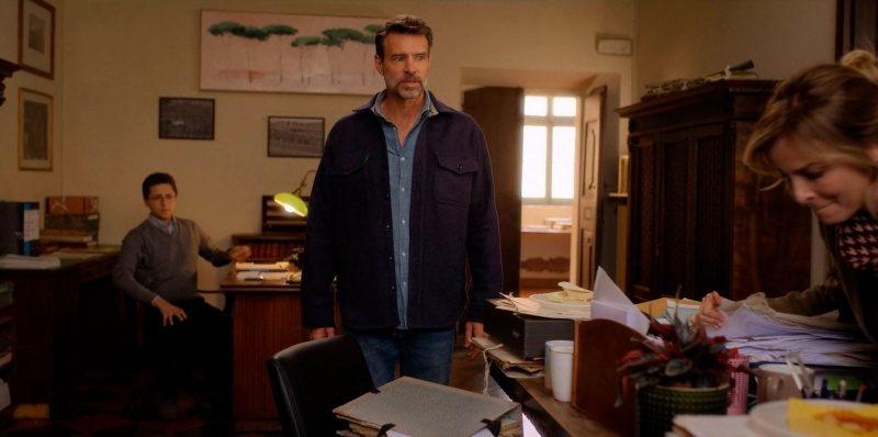 В "Под солнцем Тосканы" вокруг главной героини вились почтительные итальянские красавцы, а тут только sindaca Франческа, которая, скажем прямо, вокруг Эрика и не вьется, хотя видно, что импозантный и красиво седеющий Эрик ей явно нравится. Ну и в Эрике внезапно загорается.... стремление учить итальянский язык, когда он выясняет, что Франческа пару лет назад овдовела, и она не находится в отношениях.
