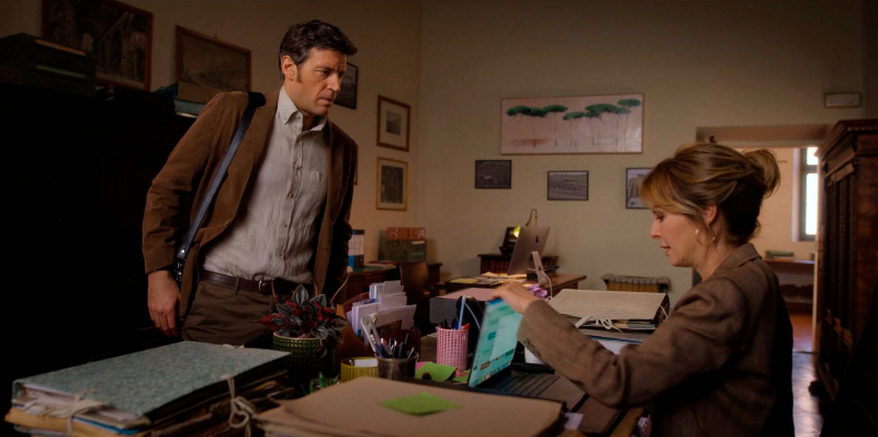 И тогда Франческа, которая понимает, что ее план проваливается, показывает им дом, который формально еще не готов к продаже, но она уверяет, что ее друг Бернардо (Томмасо Базили) очень быстро закончит оформление необходимых документов.