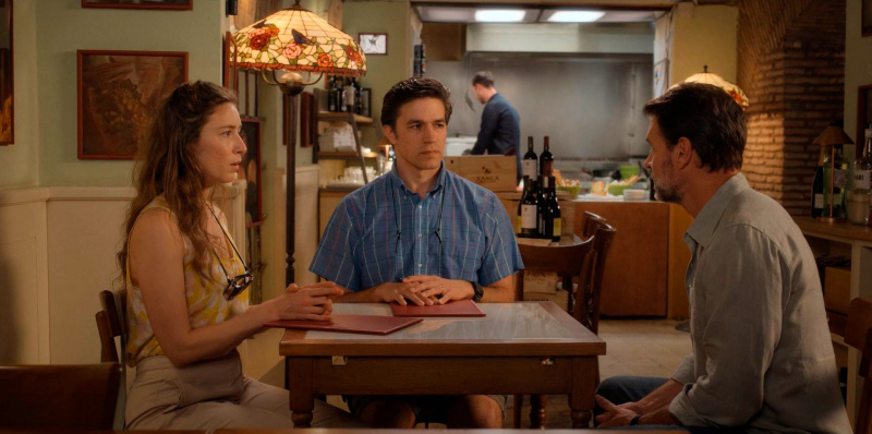 Сериального актера Скотта Фоули я до этого если и видел - он вроде играл в "Докторе Хаусе" и в "Клинике", - то совершенно не запомнил. Здесь на роль возрастного красавца-американца он вполне подходит, но отыгрывает свою роль как-то, скажем честно, без огонька. Но неплох, да, камень мы в него не кинем, тем более что он и безо всякого камня там конкретно навернулся на старом итальянском велосипеде, poveretto.