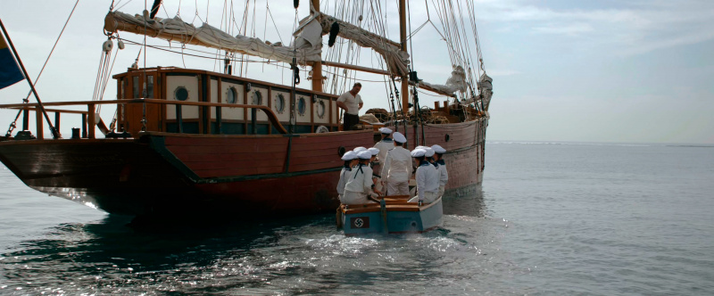 С точки зрения зрелищности и динамичности в картине все хорошо. Схватка с фашистским десантом, высадившимся на траулер, операция в поезде, налет на Канарский остров для освобождения Джеффри, остров Фернандо-По и офицерская вечеринка, ну и сама лихая операция с кучей всяких схваток и перестрелок - и смотрится здорово, и по динамике не проседает.