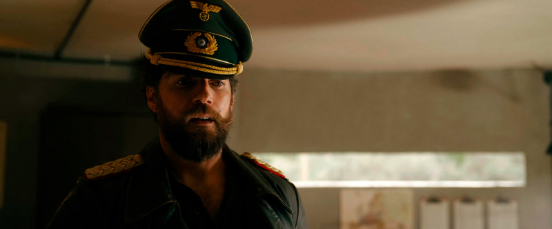 Генри Кавилл тут выступает в несколько необычном антураже - у него эдакая романтическая прическа, усы и бородка, - и он тут мне прямо-таки понравился, хотя остальные его роли меня скорее оставляли равнодушным. Здесь его персонаж - настоящий боевой командир, не слишком склонный подчиняться приказам начальства, но для данной авантюры именно такой человек и требуется. Также видно, насколько его уважают члены группы - тоже все по своему лихие и трудноуправляемые, - и его авторитет в группе беспрекословен.