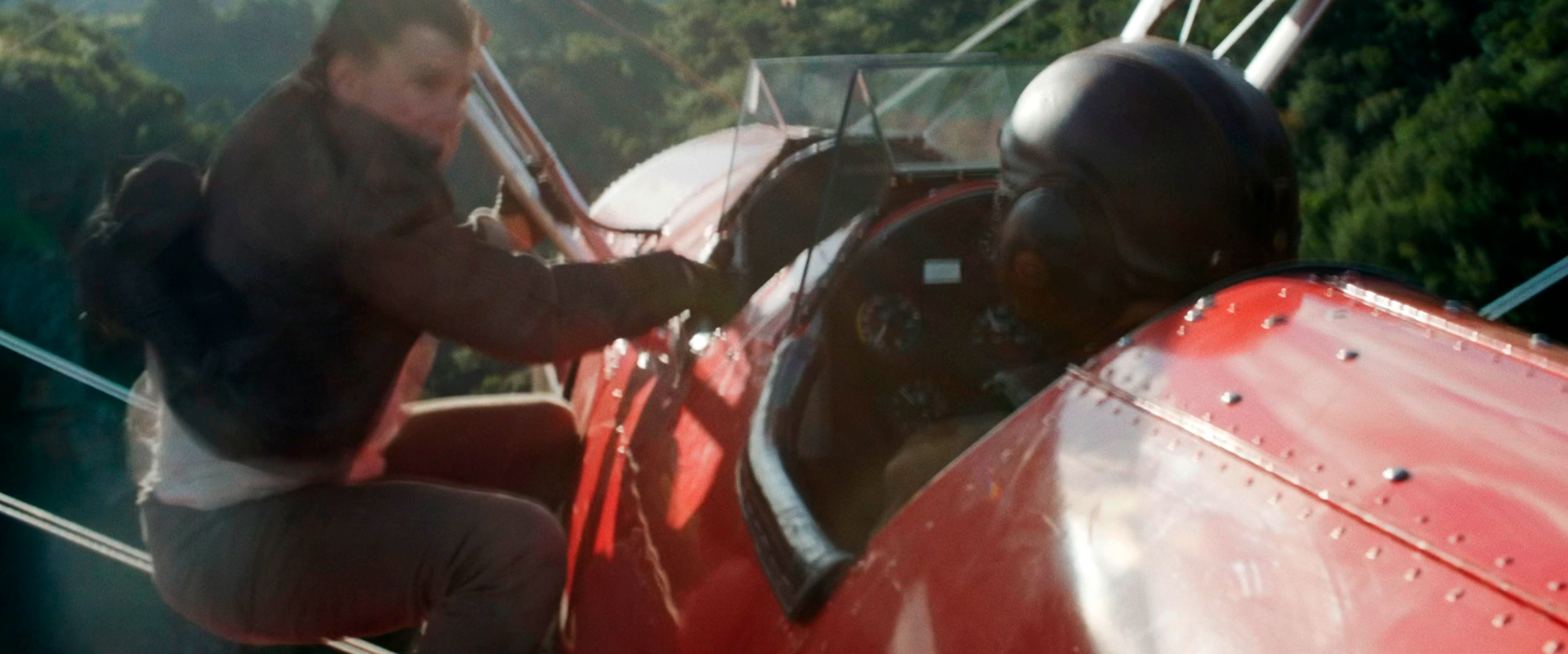 Второй мощный спецэффектный эпизод - это как Итан пытается догнать зловещего клеврета Entity по имени Гэбриэл (Эсай Моралес). Гэбриэл улетает на стареньком биплане, Итан на таком же биплане пускается в погоню: у Гэбриэла на шее висит лютеровская флешка, без которой ИИ не победить, и Хант там показывает чудеса эквилибристики, пытаясь добраться до Гэбриэла. Это смотрится очень здорово - прямо-таки захватывающе.