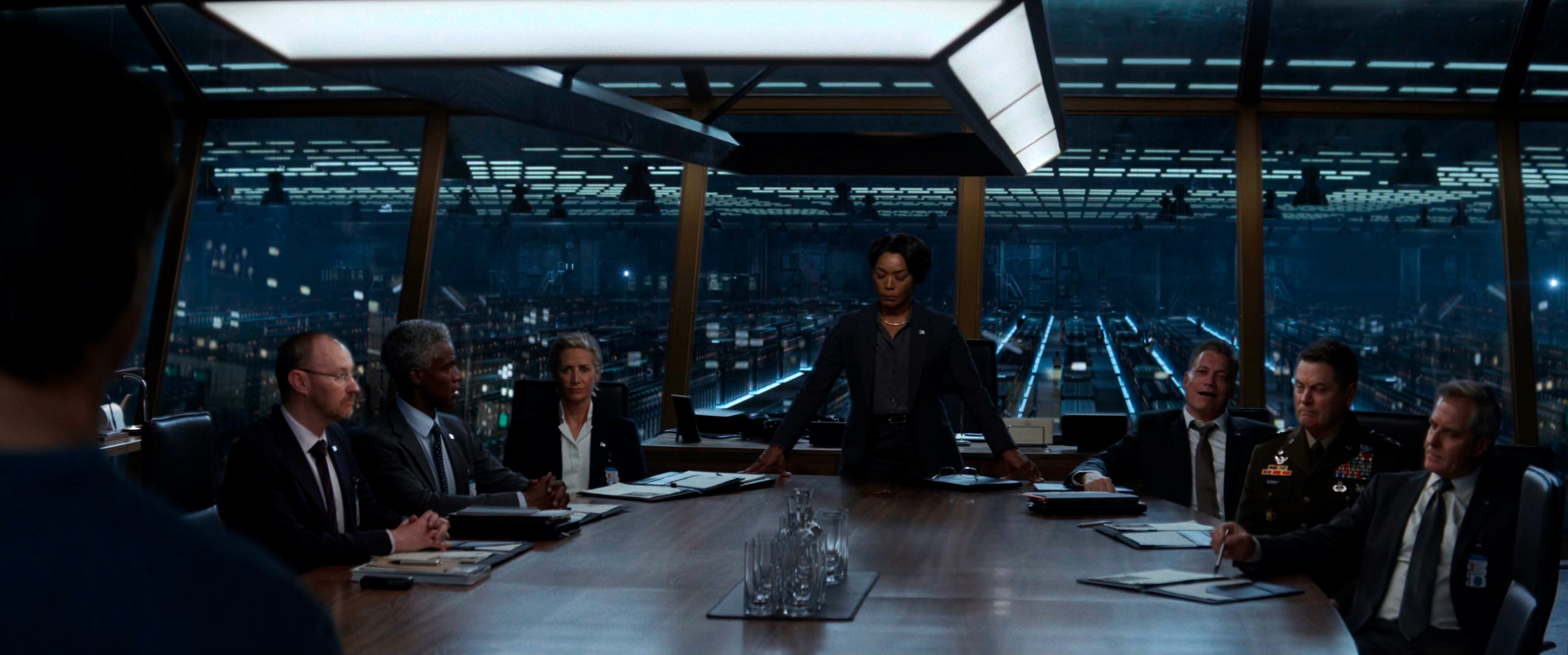 Об остальных актерских работах тут практически нечего сказать. Главгад Гэбриэл свое главгадство пытается подчеркнуть "сатанистским" смехом, что смотрится несколько комично. С американским руководством там вообще все на уровне конкретного балагана. Нет, я только за, что там в президентах условная "Камала Харрис" - ее изображает Анджела Бассетт.