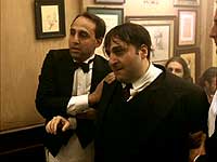 Ну и, конечно, весь этот пафос с соревнованием художников... Я вдруг вспомнил фильм "Взятие Берлина". Как в 1945 году в Берлине разом остановились все бои (по фильму), люди застыли, с неба спустился самолет, и оттуда вышел сияющий товарищ Сталин, осыпаемый цветами. Нет, в "Модильяни" Моди не спускался с небес на это соревнование (хотя я бы уже не удивился). Я о накале сопливого, совершенно фальшивого и не нужного пафоса.