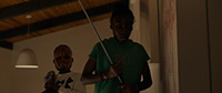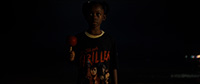 Лупита Нионго старательно, хотя и не слишком впечатляюще изображает животный ужас, а Уинстон Дьюк (очередное альтер эго самого Джордана Пила - он любит это дело) играет что-то похожее на буффонадную комедию. Детишки поначалу тоже вроде сильно боятся, но потом начинают мочить монстров из канализации так, что только пыль стоит. И уже как-то не сильно боятся - вот такие они бравые ребята!