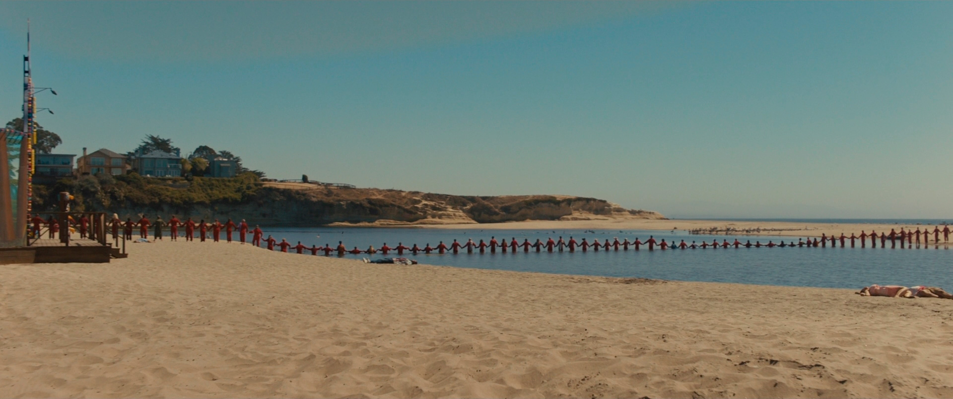 2. Фильм в значительном смысле- метафора социального и классового неравенства, на что указывают например красные «тюремные» робы Теней. Но это слишком очевидный, и потому неинтересный месседж. Правда, здесь можно вырулить на более интересную метафору – Тени отождествляются с коренными американцами, чья земля была захвачена.