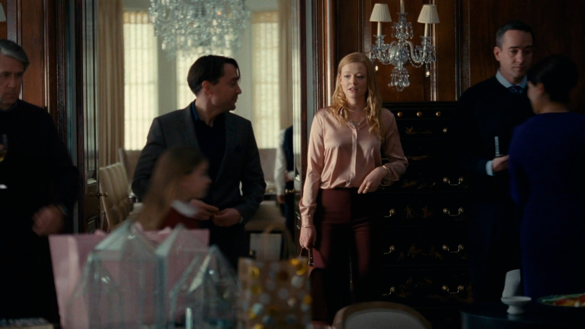 Тома сыграл известный британский актер Мэттью Макфэдиен, и роль также получилась совершенно замечательной: как Том себя ведет с Шив и Логаном, как он помыкает своими подчиненными, как он отчаянно барахтается в этом семейном компоте, пытаясь выплыть, - ну просто блеск! Причем Макфэдиен запросто может сыграть крутого и волевого начальника (он такового сыграл в чудесном британском фильме "Все возможно, бэби"), а здесь персонаж вот просто совсем другой.