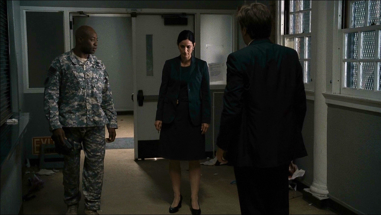 Руководят операцией крупные чины из спецслужб и военных. В здание привозят также группу фэбээровцев, руководит которой агент Хелен Броди (Кэрри-Энн Мосс) - она как раз занимается отслеживанием возможных террористов.