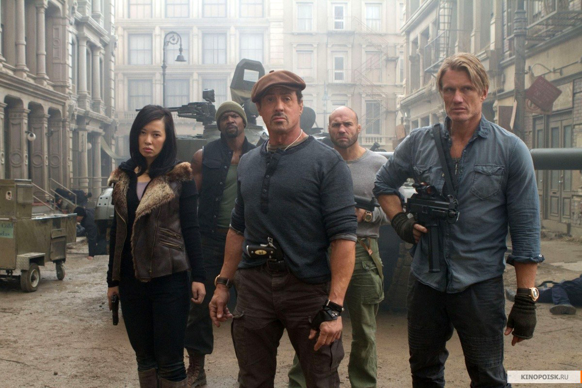 И просто куча реверансов к старым временам. Чего только стоит драка Слая с Ван Дамом в конце )) Ну и как романтику обыграли на финале. Слай с китаянкой. Всем своим видом прям показал "девочка моя, ну какие к чертям уже поцелуи на фоне зарева от пожаров и взрывов, успокойся" )) Ну и конечно "научись ты уже драться" это супер. Вобщем, восторг ))