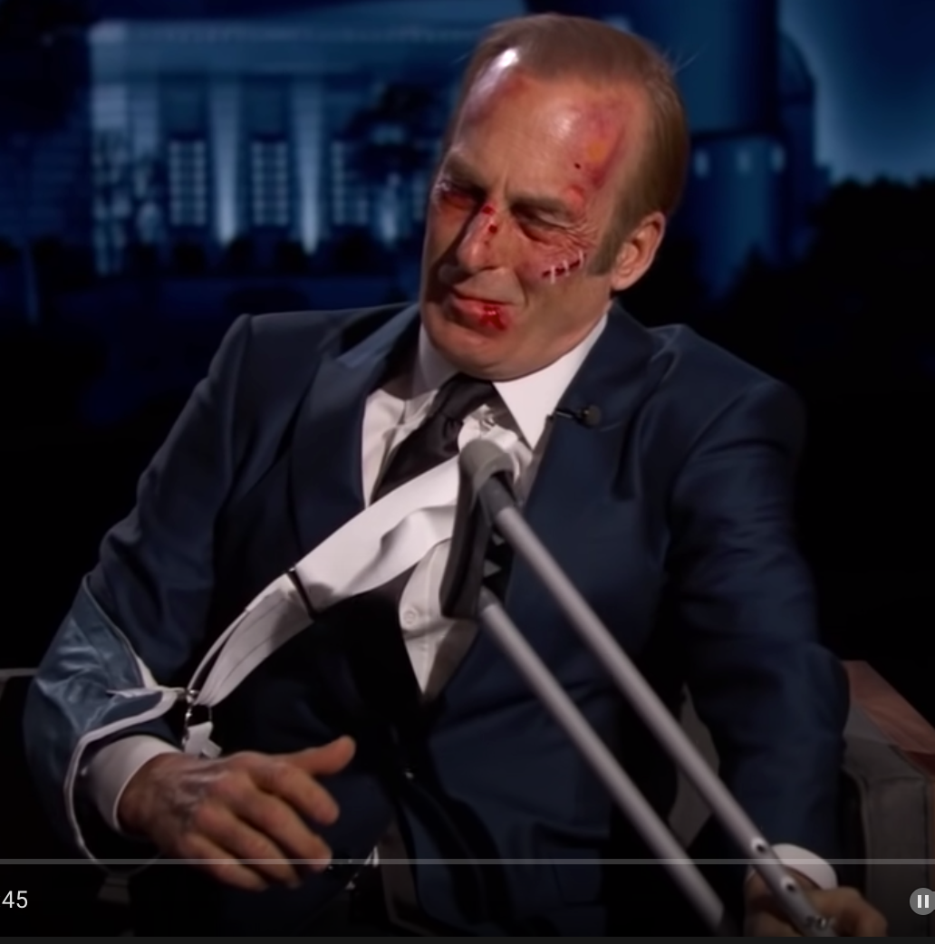 Боб/Соул явился к Киммелу пару недель назад на интервью вот в таком виде.