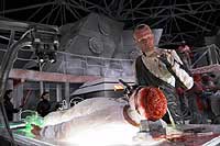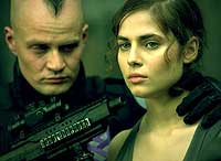 По антуражу - +100500. Вообще, наша современная кинофантастика (и "Обитаемый остров" - чуть ли не ярчайшее подтверждение) исправно плетётся за Голливудом, повторяя все находки, использованные им лет 20-30 назад. В данном фильме это - перекошенные и раскрашенные рожи злодеев, изуродованные дебильными накладками и прибамбасами машины и оружие, сочетание кричащей роскоши правителей и пыльной гнилозубой бедности народа. Когда смотрел кино - в памяти даже всплывали обрывки американских фильмов, виденных в середине 90-ых по "кабелю", в которых всё это уже было.