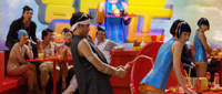 Создатели фильма хорошо подошли к воссозданию соответствующего антуража, однако интереснее всего тут выглядит грим персонажей - все-таки мы не забываем, что куча актеров играла чуть ли не пять-шесть ролей, причем совершенно различных. И этот грим был сделан просто здорово: было особым удовольствием узнавать под совершенно неузнаваемой физиономией Хью Гранта, Хьюго Уивинга и так далее. А уж когда из Хэлли Бэрри сделали еврейскую девушку, а из Пэ Ду На ирландку - это, я вам скажу, было круто!