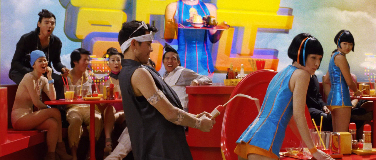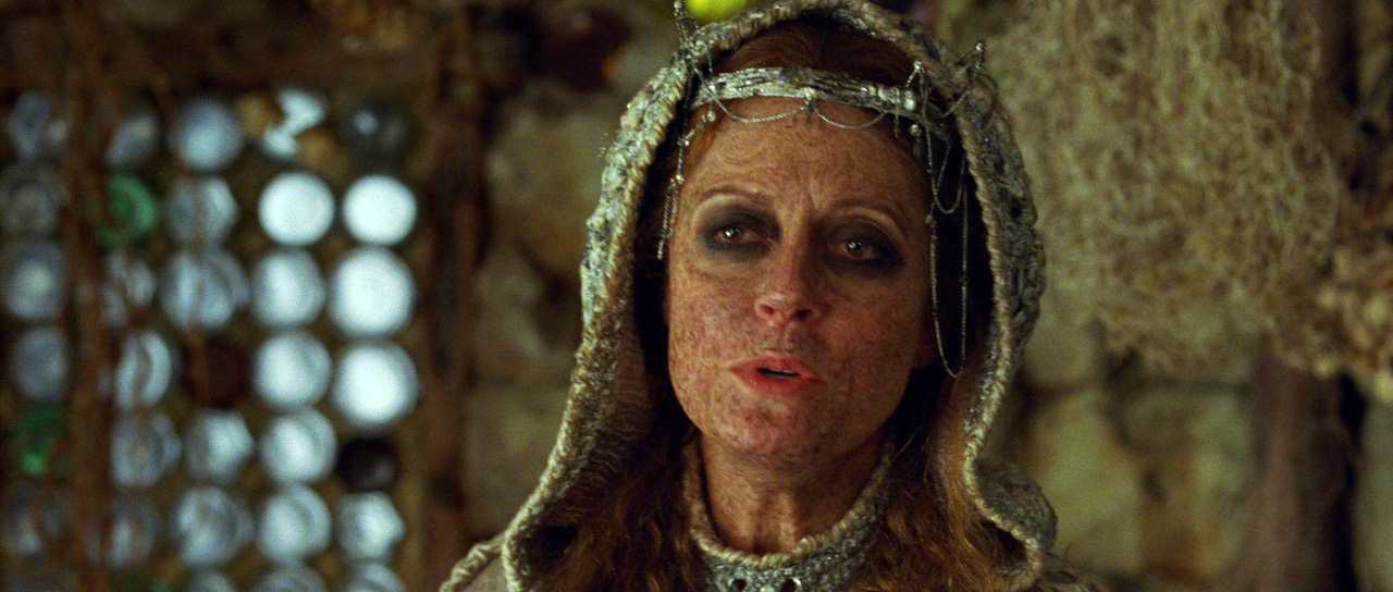 Надо сказать, что художники и гримеры в фильме проделали огромную работу. Двадцать два актера играли по три - шесть ролей в картине; некоторых из них приходилось гримировать практически до полной неузнаваемости. Смотрелось это здорово, ну и отдельным развлечением были финальные титры, на которых показывалось, каких именно персонажей играли ведущие актеры. (На иллюстрации справа - Пэ Ду На.)
