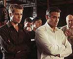 Парочка Клуни-Питт - великолепна! Клуни, к счастью, мужик умный да и с большим юмором, поэтому он не строит из себя эдакого секс-символа, а играет Дэнни так, как и полагается играть очаровательного воришку. Симпатии зрителей, однозначно, на стороне Оушена, ведь Дэнни грабит не старушку-пенсионерку, а негодяйского богатея, который гад, зажрался, ходит с хищной рожей, а к тому же - увел жену Дэнни. Так что Дэнни, можно сказать, просто Робин Гуд наших дней, хоть и не носит трико.