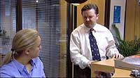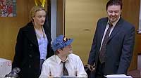 Третий персонаж - секретарша офиса Доун Тинсли (Люси Дэвис). У нее есть жених по имени Ли (Джоэл Беккет), с которым Доун помолвлена уже пару лет. Однако Доун очень дружит с Тимом, который в нее давно влюблен, так что там наблюдается не совсем классический, но определенный любовный треугольник.