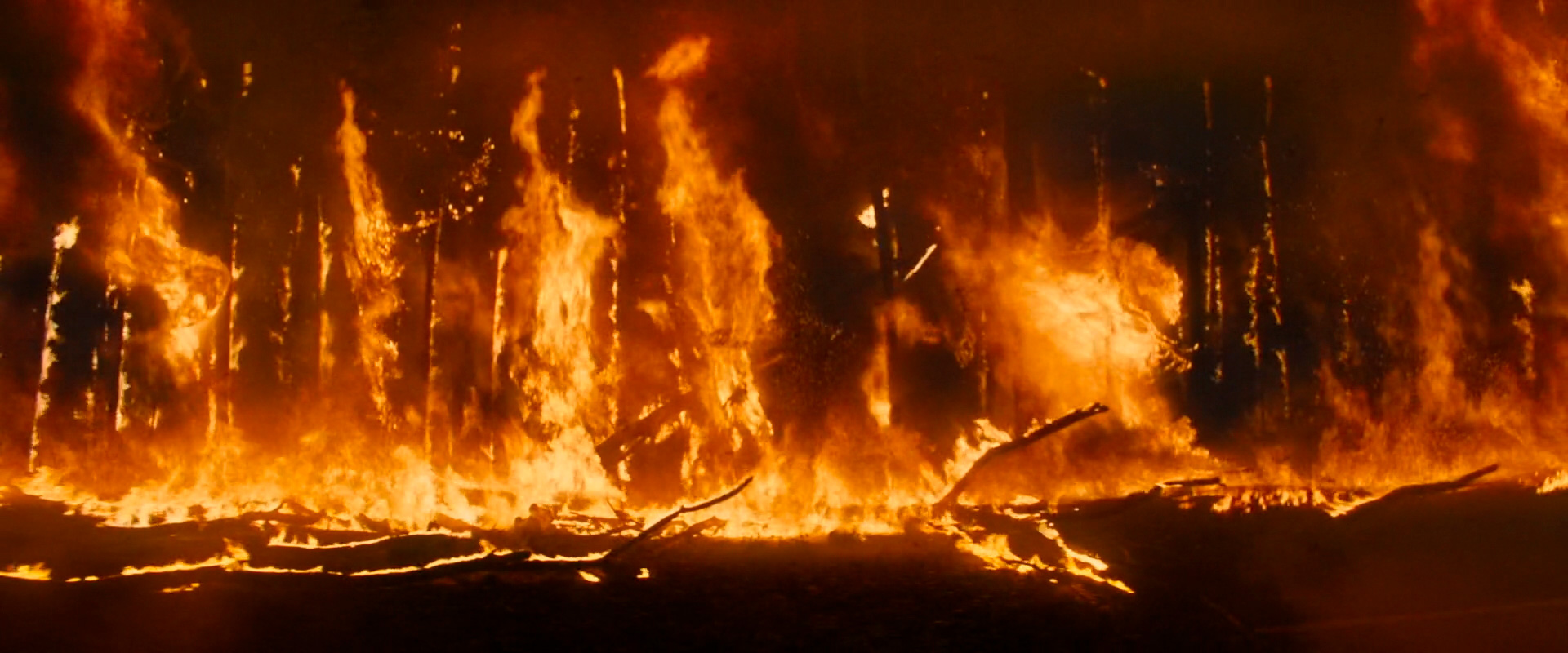 За что можно похвалить? За нагнетание напряжения и постановку реального ужаса под названием "верховой лесной пожар". Это снято очень и очень эффектно. Более того, насколько я понял, здесь очень по минимуму использовалась компьютерная графика, а сцены горящего леса снимались в специальном павильоне, где этот "лес" был выстроен из настоящих спиленных деревьев. И актеры снимались рядом с настоящим горящим деревом, так что съемки были реально очень тяжелыми. Но это как раз было не зря - в картине все сцены с пожаром выглядят достаточно достоверно, а не мультяшно.
