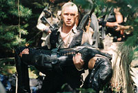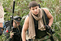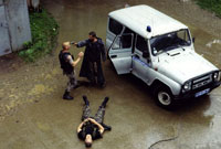 Владимир Машков сыграл Мазура вполне хорошо: попадание в роль, как мне кажется, отличное. И тебе мачо, и тебе более или менее богатырь, и тебе рэмбо-разрэмбо, но в то же время - настоящий российский полковник: слуга царю, отец солдатам, суровый друг девушки с четвертым размером бюста и ненавистник подлого начальства - генерал от него получил в рожу, и, хотя это также штамп из "Кобры", зал бешено аплодировал и плакал от счастья. Признаюсь, я тоже не мог сдержать слез, уж больно трогательно это выглядело.