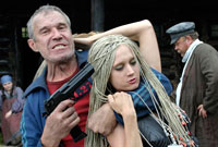 Евгений Миронов играет отморозка Прохора. И вот тут роль получилась уже значительно круче, чем зарубежные аналоги. В голливудских фильмах кто обычно играет отморозков? Мордовороты с дебильным выражением на лице, которых специально подбирают по картинкам из учебников Ломброзо, и чье актерское дарование позволяет только хрипло захохотать и произнести: "Ну все, ты труп!" (Впрочем, бывают, конечно, и исключения.) Здесь же на роль преступника-психопата приглашен один из лучших российских актеров, и это было стопроцентно правильным решением: что там вытворяет Миронов - это просто нужно видеть! Потрясающая игра, потрясающая роль, и только из-за нее уже можно отправляться смотреть этот фильм без всяких раздумий.
